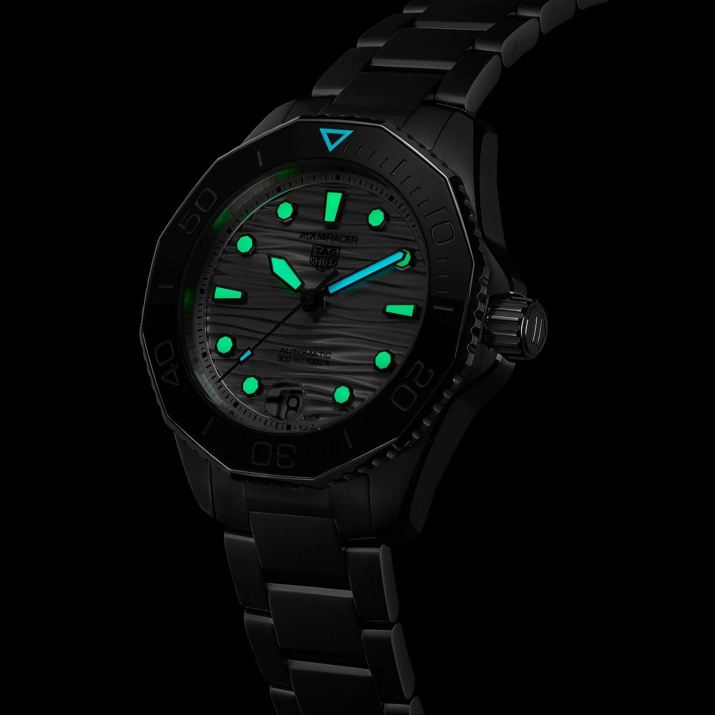 La montre de plongée pour femme TAG Heuer Aquaracer WBP231C.BA0626 allie avec élégance et robustesse, idéale pour les exploratrices qui apprécient le design luxueux. Son cadran blanc , orné de stries horizontales évoquant les vagues de l'océan, offre un effet visuel texturé et dynamique. Les index et aiguilles luminescents garantissent une excellente lisibilité en toutes circonstances, tandis que les index argentés polis apportent une touche de raffinement à son esthétique sportive.
