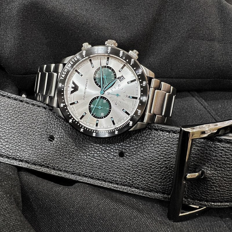 Emporio Armani AR11471 is a functional and handsome Gents watch. Case is made out of Stainless Steel and the MultiColour dial gives the watch that unique look. The features of the watch include (among others) a chronograph.