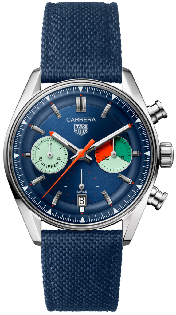 Orologio TAG Heuer Carrera Skipper CBS2213.FN6002. La naturale affinità della vela con gli sport motoristici e la sua incessante passione per la precisione e la velocità ispirano questo iconico TAG Heuer Carrera "Skipper". Un audace omaggio alla nostra tradizione velica, espresso attraverso una combinazione di colori distintiva. Decisamente iconico.