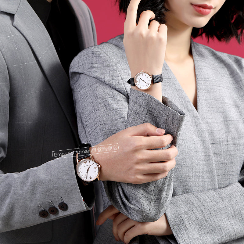 Solid case back. Round case shape, Ladies case size: 41 mm. Men's case size: 48 mm. Tang clasp. Water resistant at 30 meters / 100 feet. Functions: hour, minute, second. Emporio Armani Silver Dial Mens/Ladies Watch Set AR80015.