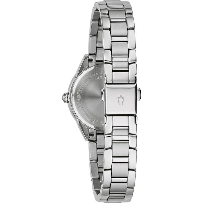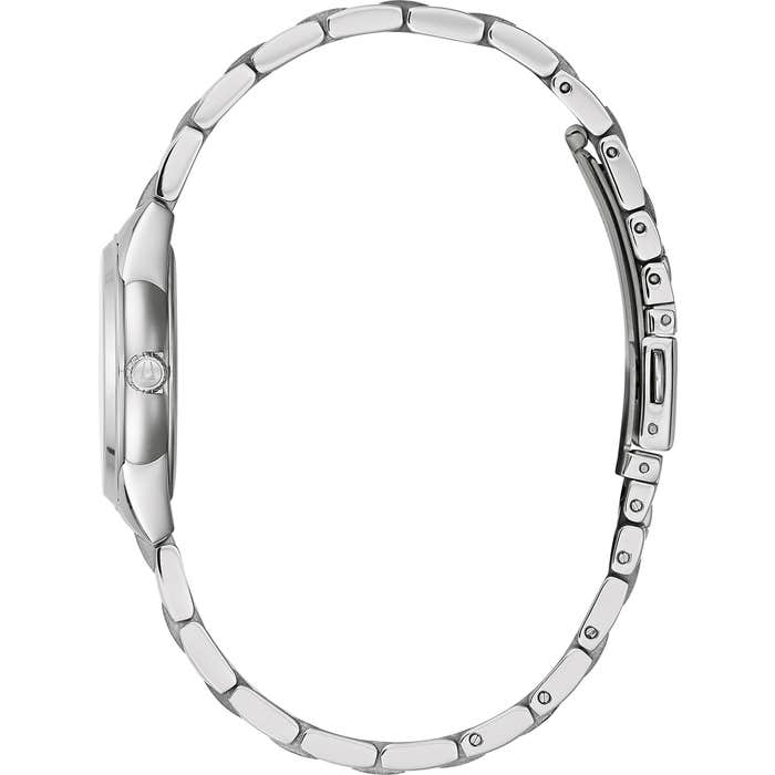 サットンコレクションのスタイリッシュなブローバ レディースウォッチで、ワードローブに彩りを添えましょう。シルバートーンのステンレススチールケースは、上品なブラッシュ仕上げとポリッシュ仕上げが施され、ドーム型サファイアクリスタルが透明度を高めています。パステルブルーのサンレイダイヤルは、11個の輝くダイヤモンドインデックス、スリムな針、そして12時位置には音叉のロゴが配された、洗練されたシンプルさが魅力です。時計には、フォールディングクラスプ付きの3連ステンレススチールブレスレットが付属しています。この小ぶりなブローバ レディースウォッチで、あなたのセンスを存分に発揮してください。