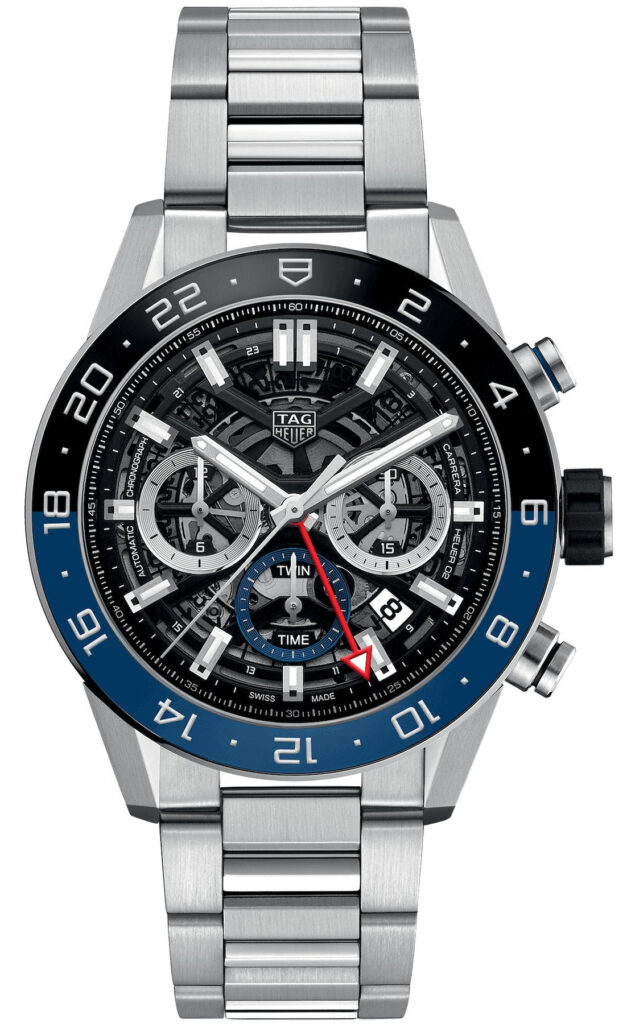 モータースポーツの力強さを時計に凝縮した、この壮麗なタグ・ホイヤー カレラ GMT クロノグラフは、レーシングカーを彷彿とさせるデザインと魅惑的なスケルトンダイヤルで、見る者の心を躍らせます。アバンギャルドなアイデンティティを貫くタグ・ホイヤーは、最新の自動巻きムーブメントに新たなGMT機能を搭載し、旅行者や冒険家にとって理想的なクロノグラフウォッチに仕上げました。