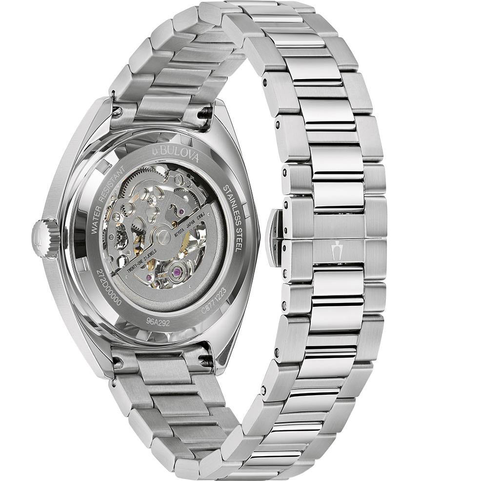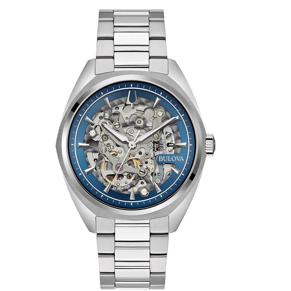 New to Bulova’s Classic collection, this automatic watch features a sleek and sophisticated design, showcasing the brands attention to detail. From a stainless-steel case and bracelet with a push-button release, to its blue full-exhibition dial and caseback, this timepiece is perfect for any occasion.