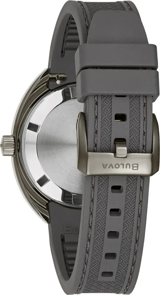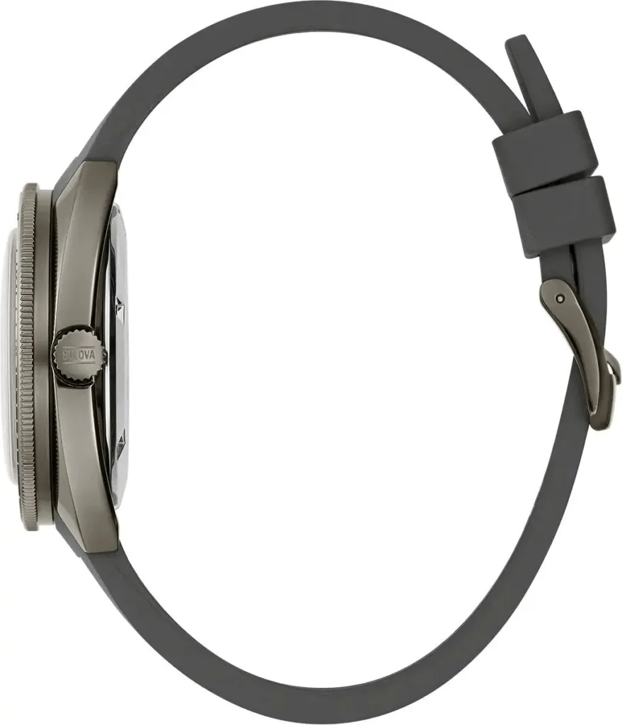Discover the thrill of adventure with the Bulova Men’s Oceanographer GMT, available exclusively at our store. This 41mm stainless steel watch features a grey IP coating, a unidirectional rotating bezel, and water resistance up to 200 meters. Its luminescent white dial, black 24-hour scale, and bold luminescent hands ensure readability in any light. Powered by a self-winding GMT movement with a 42-hour power reserve, this watch is as reliable as it is stylish. Paired with a grey silicone strap, the Oceanographer GMT is the ultimate blend of luxury and functionality.