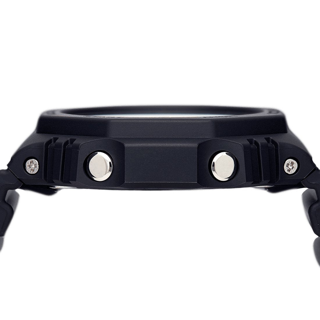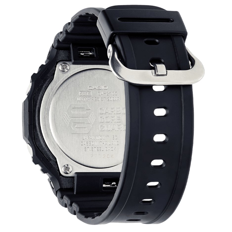 Buy the latest addition to the carbon core guard line-up: the GA-2100. This sleek black and grey piece embeds the latest carbon core guard technology in a slimmer more refined case. Taking inspiration from the 1983 original model, the DW-5000C, this watch gives homage to the much loved retro look with its unique octagonal bezel, framing an analog-digital display. As with the GA-2000, the GA-2100 has an interchangeable resin strap for customization with any outfit or occasion. Despite its deceptively compact design, this watch is as durable and tough as any G-SHOCK on offer with 200-meter water resistance and shock resistance. Don’t miss out on this eye-catching piece.