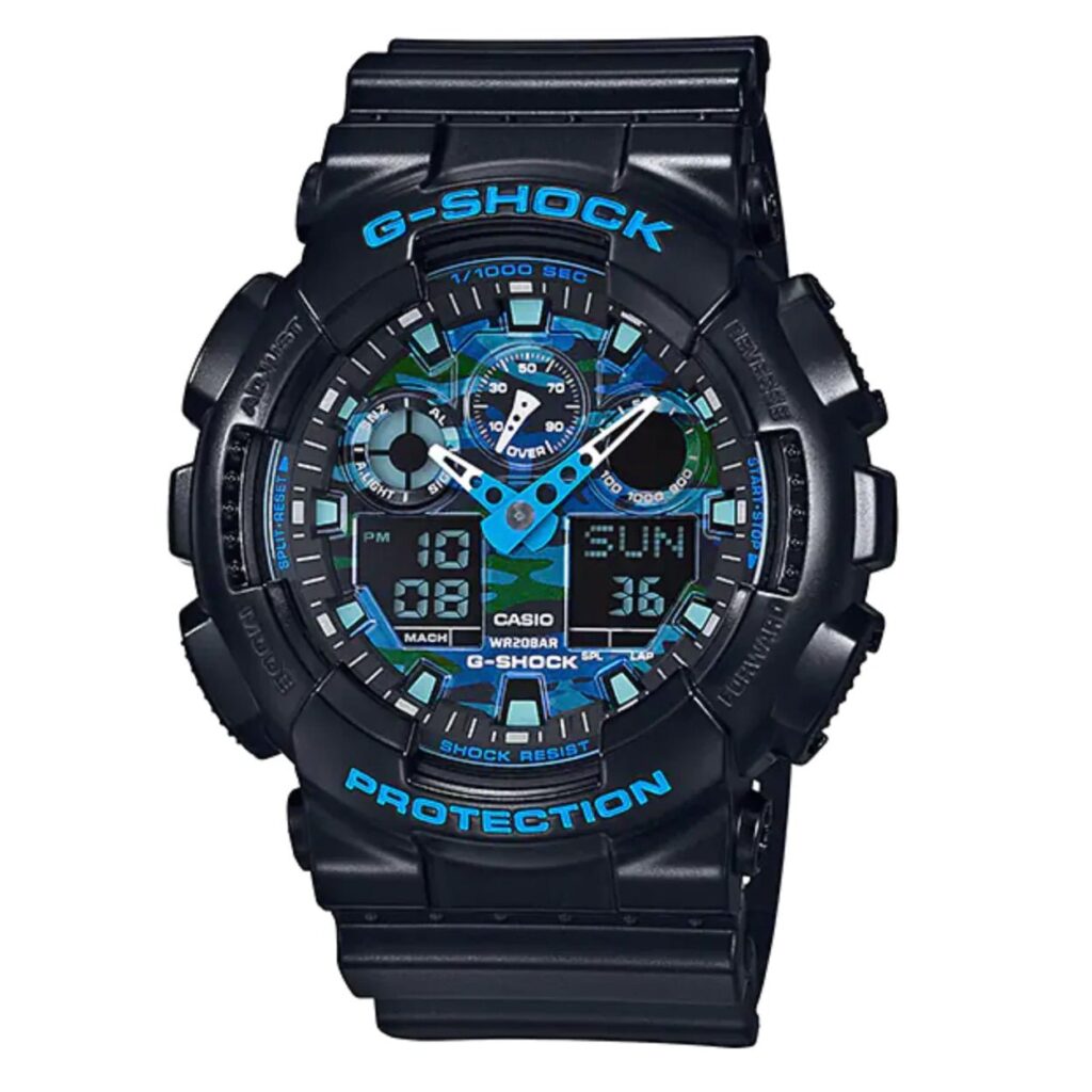 Casio G Shock Watch Mens Blue Camo Ga 100cb 1adr