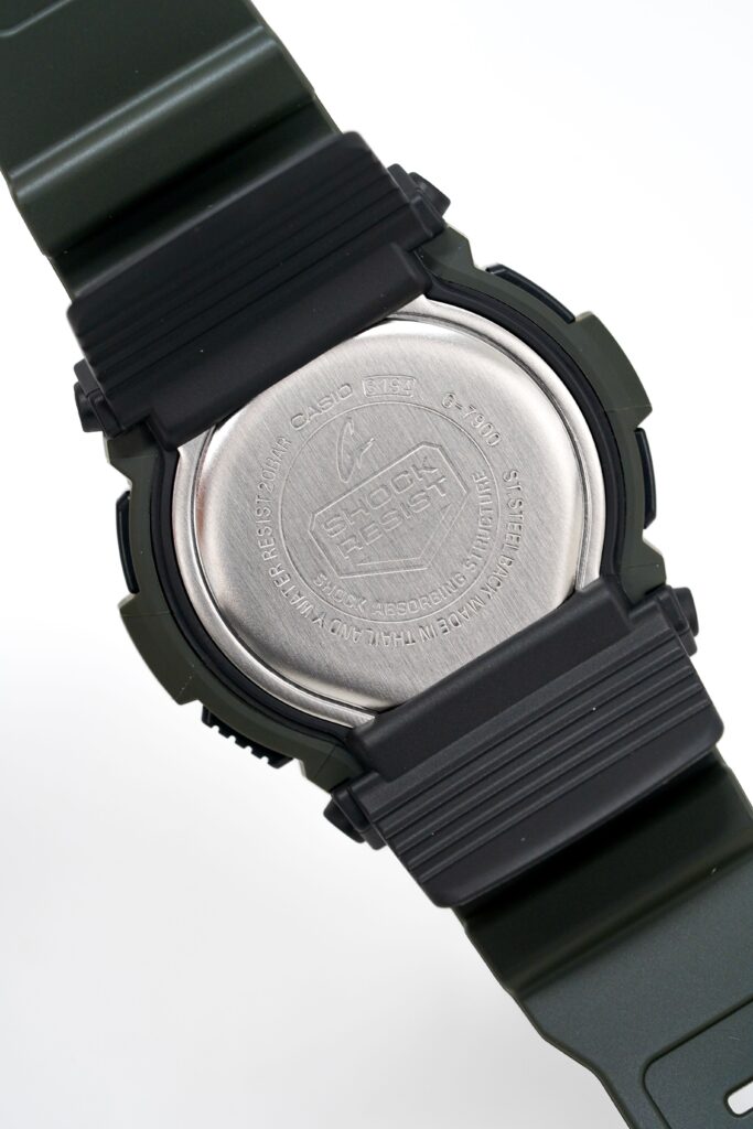 55.1mm x 52.5mm x 16.3mm Green Resin and Stainless Steel Case. Characteristic Shock-Proof Case with Easy to Press Button Arrangement