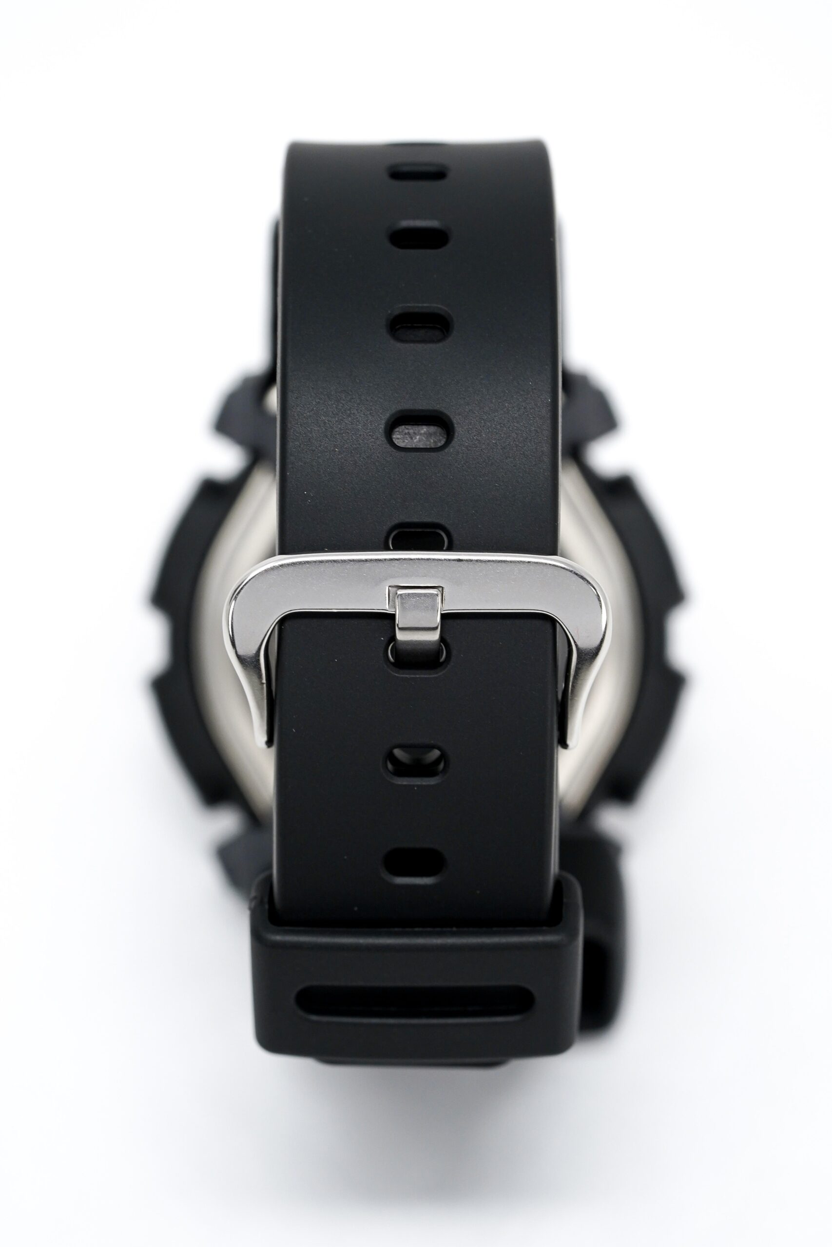 48.5mm x 43mm x 14.7mm Matte Black Resin and Stainless Steel Case. Characteristic Shock-Proof Case with Easy to Press Button Arrangement