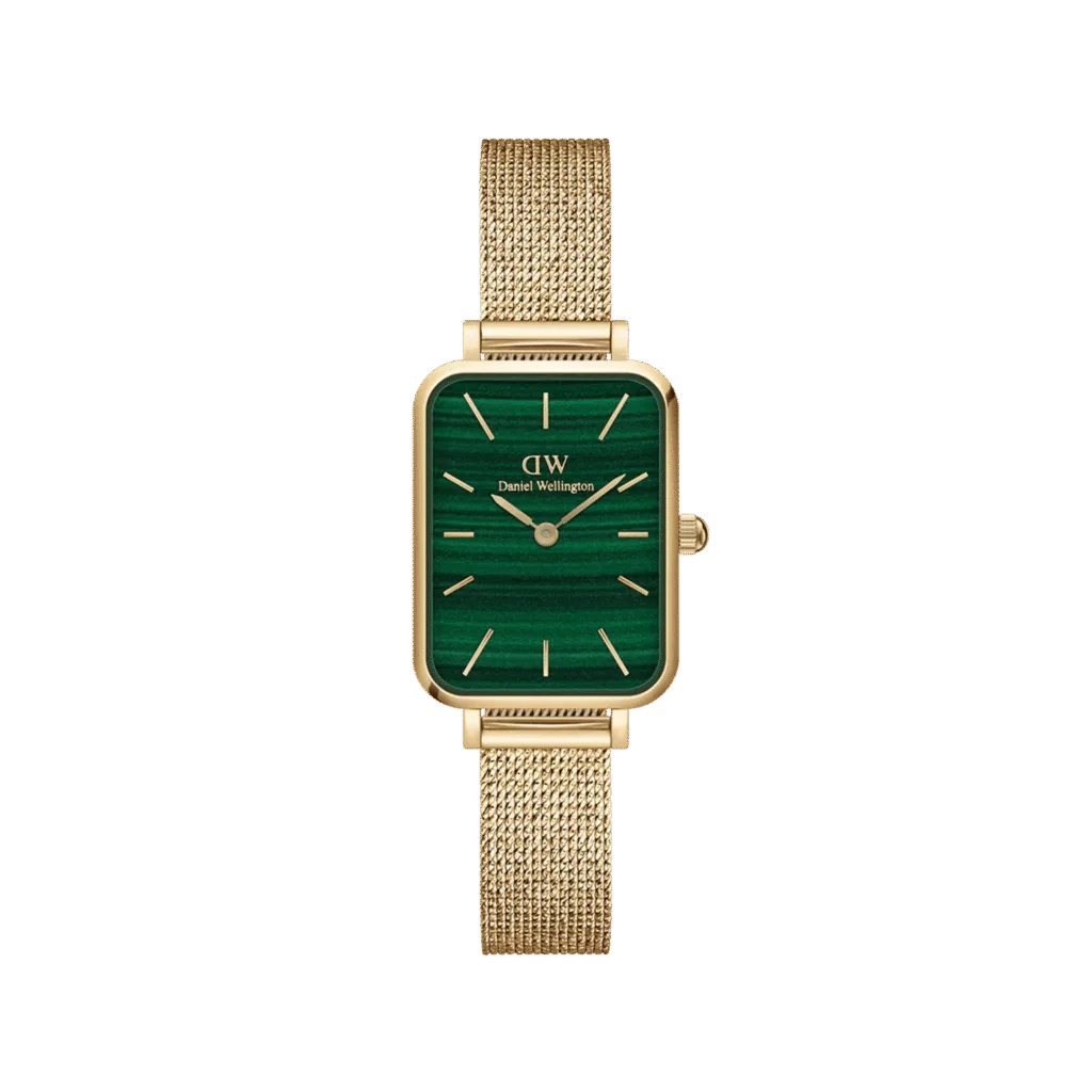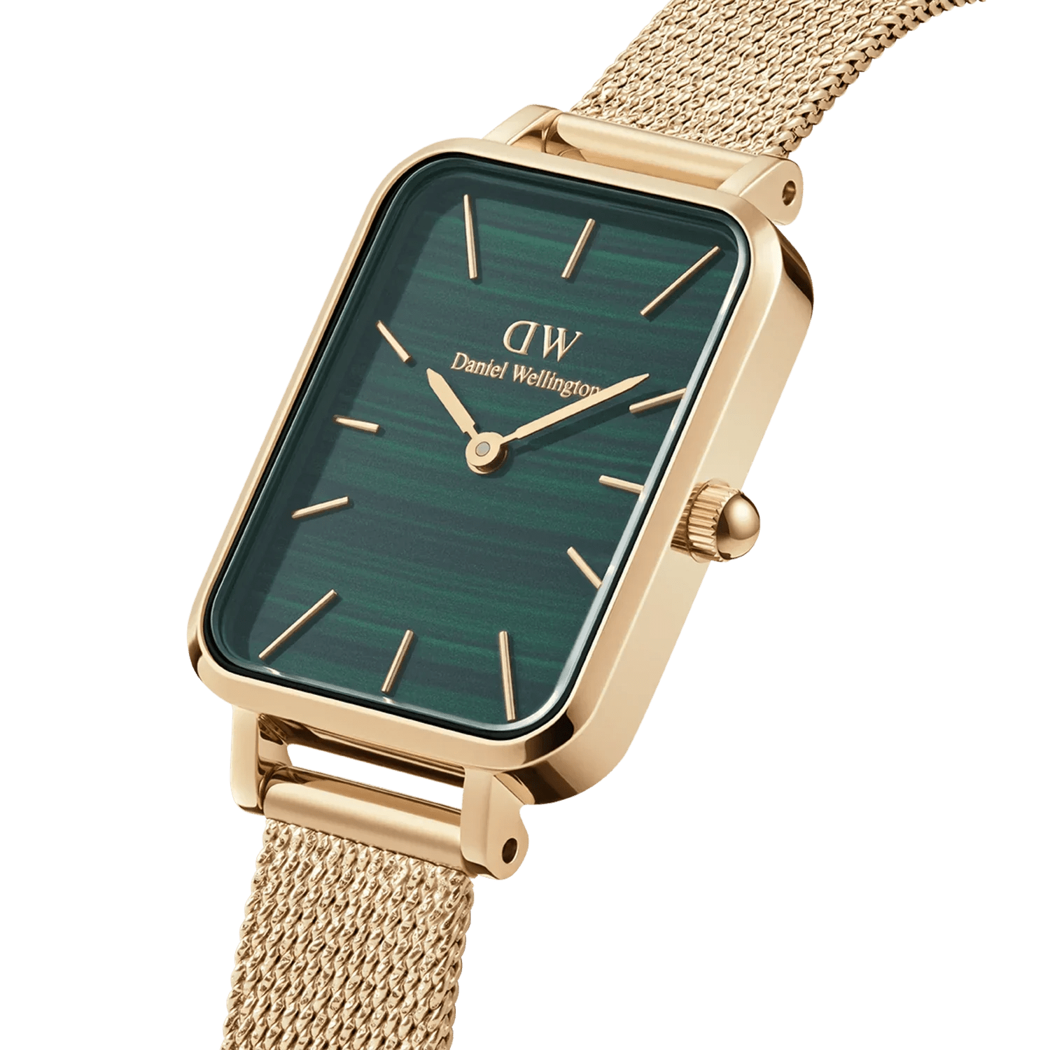 The Quadro. Made from polished stainless steel and offered in a bright silver finish or a sophisticated rose gold plating. Select from pressed mesh or pressed leather straps, and choose a dial with patterns in white, black, or green. Give your appearance a distinctive edge.