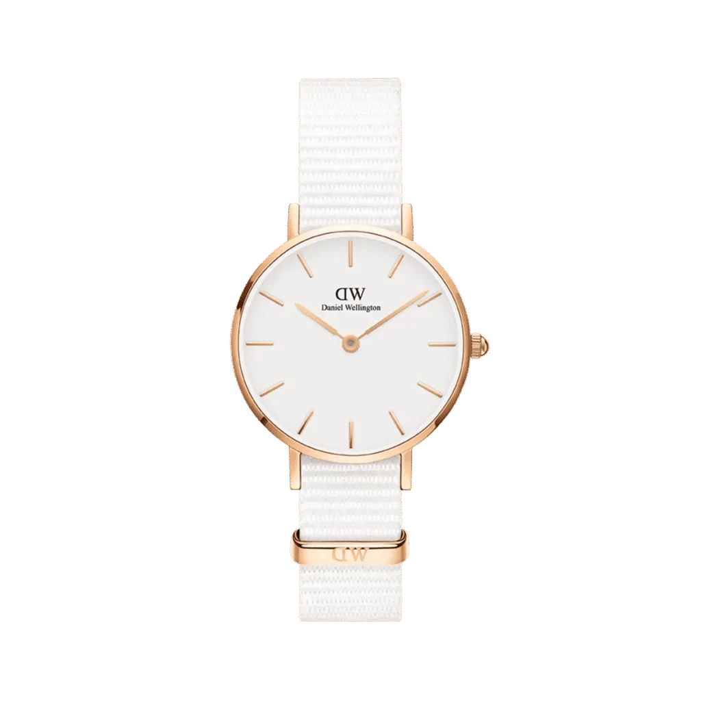 The Daniel Wellington Ladies Petite Dover White Watch DW00100313 is a beautifully crafted timepiece that exudes summer elegance. Inspired by the iconic white cliffs of Dover, this watch features an eggshell-white dial and rose gold details that perfectly complement the all-white NATO strap. The minimalist design and subtle color palette make it a versatile accessory that can be dressed up or down, capturing the essence of a classic, timeless look. Powered by a reliable Japanese Quartz movement, this watch ensures precision and style, while the interchangeable strap feature allows for personalised customisation.