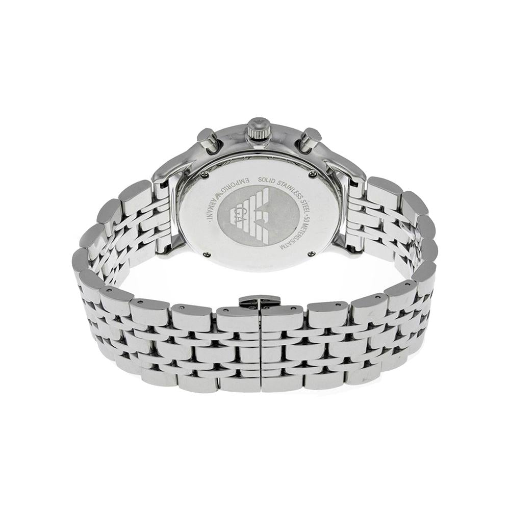 The chronograph functionality includes three sub-dials, enabling precise timing for seconds, minutes, and hours, ideal for those who appreciate the versatility of a high-performance watch. The date display discreetly positioned between 4 and 5 o’clock adds an extra layer of practicality. The Emporio Armani eagle logo at the 12 o’clock position reinforces the prestige and elegance synonymous with the Armani name.
