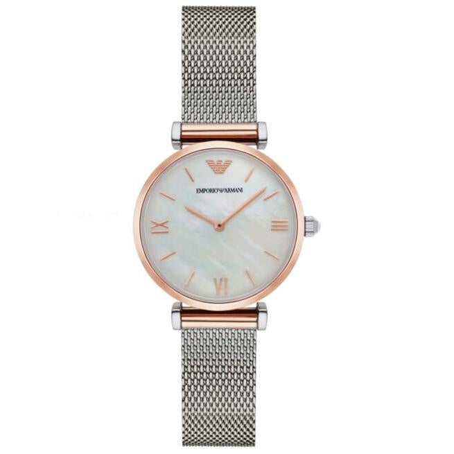 - Ladies Silver & Rose Gold Mother Of Pearl Emporio Armani Watch AR2067