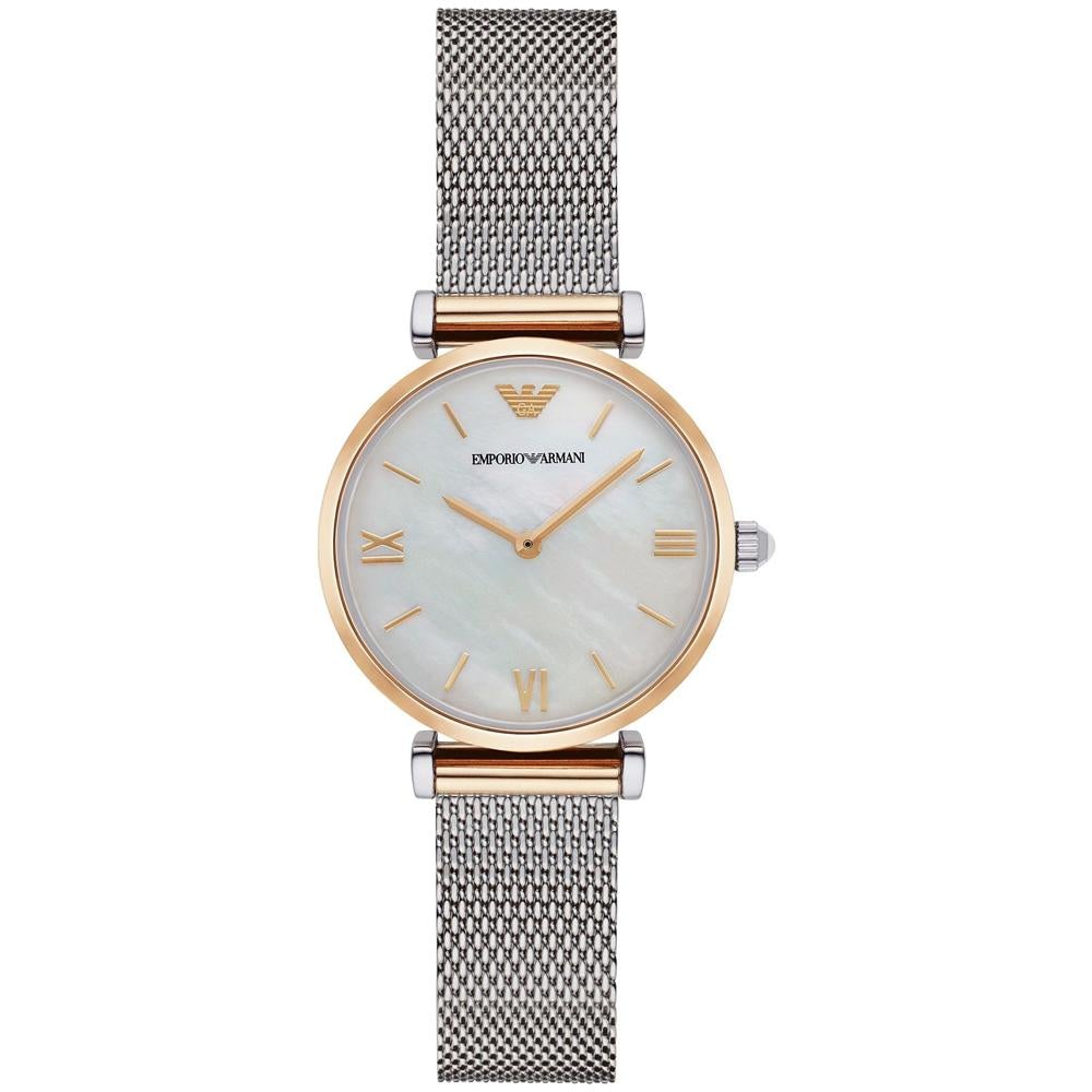 - Ladies Silver Mesh Mother of Pearl Emporio Armani Watch AR2068