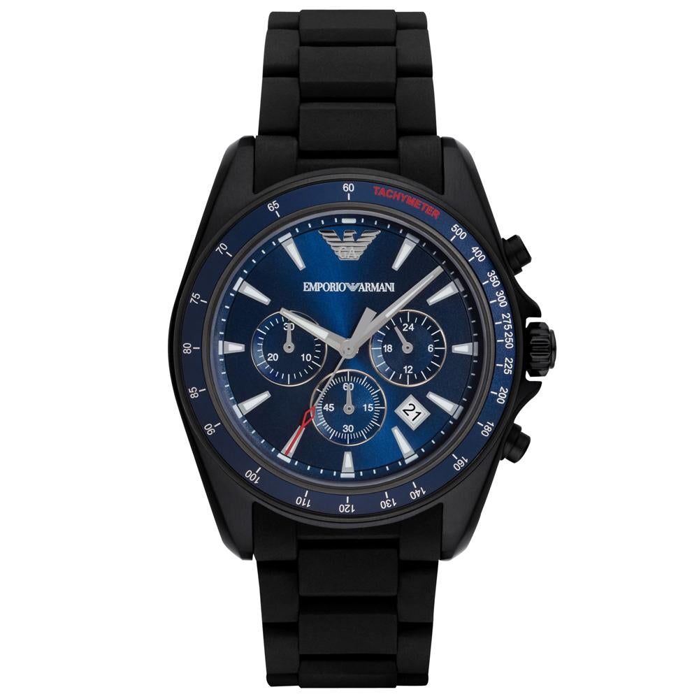 - Men’s Black Rubber Chronograph Strap Emporio Armani Watch AR6121