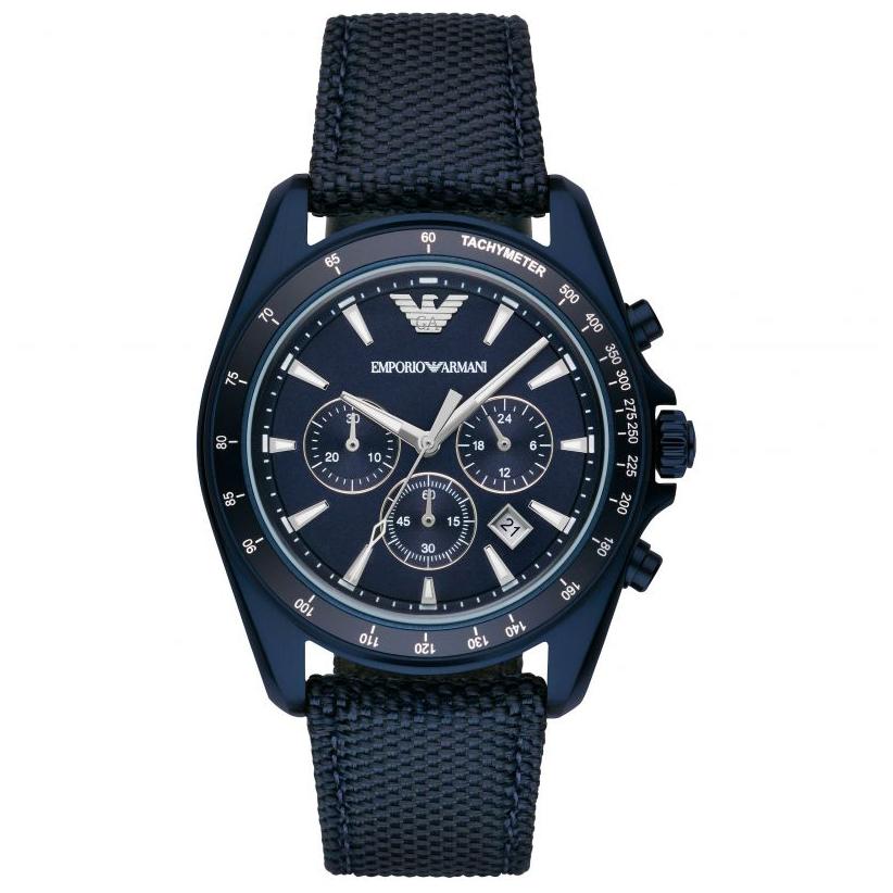 - Men’s Blue Fabric Chronograph Strap Emporio Armani Watch AR6132