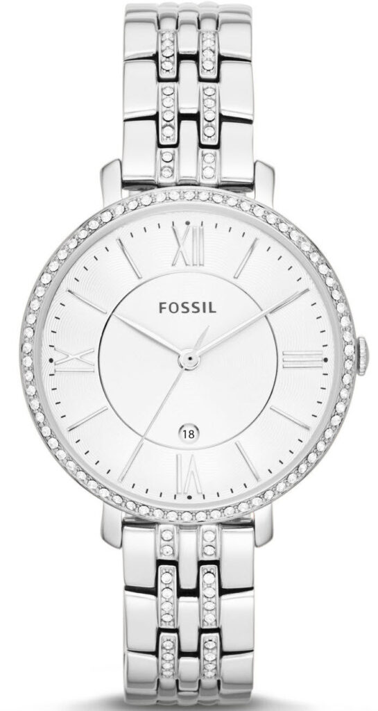Fossil Watch Jacqueline. ES3545. A striking steel bracelet and polished round dial make Jacqueline this season’s most irresistible timepiece. With a sparkling crystal topring, this classic watch is set to become her most worn essential.