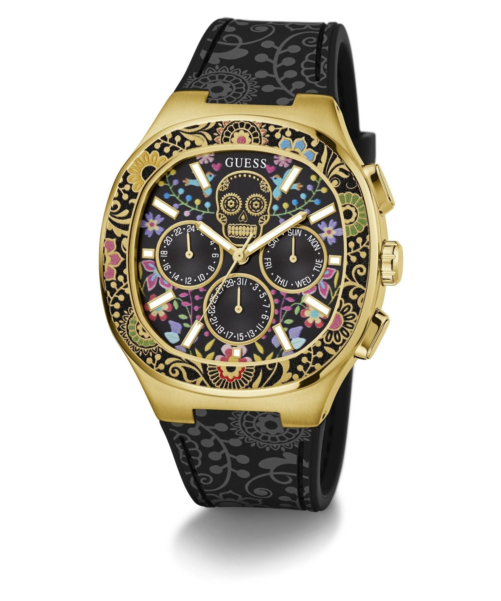 As you explore more, the silicone strap adds both comfort and style to this remarkable piece. Its black hue provides a striking contrast to the gold tone of the case, while the 25.5 mm strap width and 197 mm length ensure a perfect fit for any wrist size. Completing the design is a reliable quartz analog mechanism, renowned for its accuracy and low maintenance.
