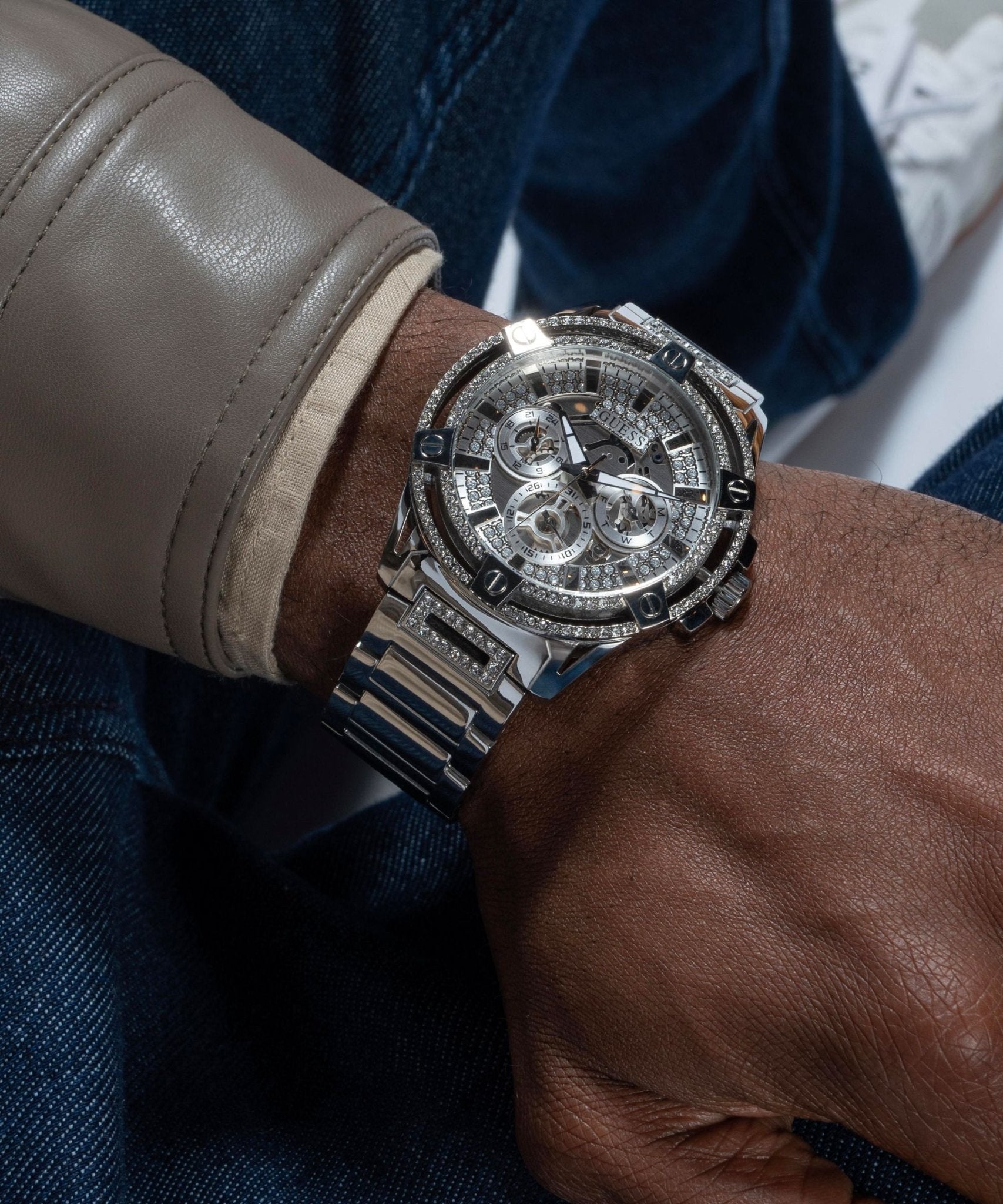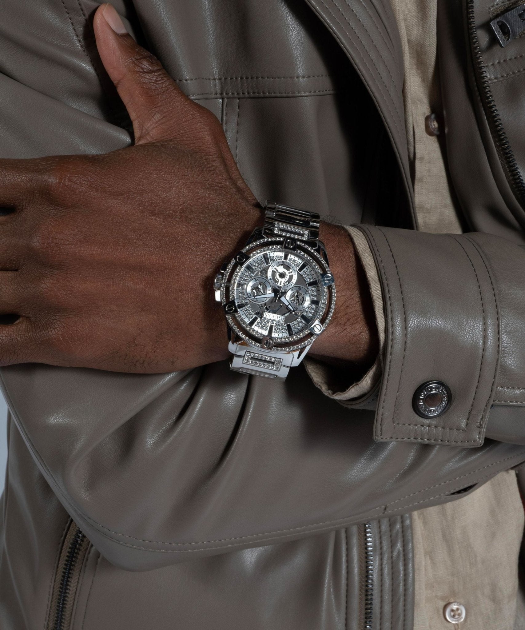 Guess Gents King Silver Tone Stainless Steel Watch GW0497G1