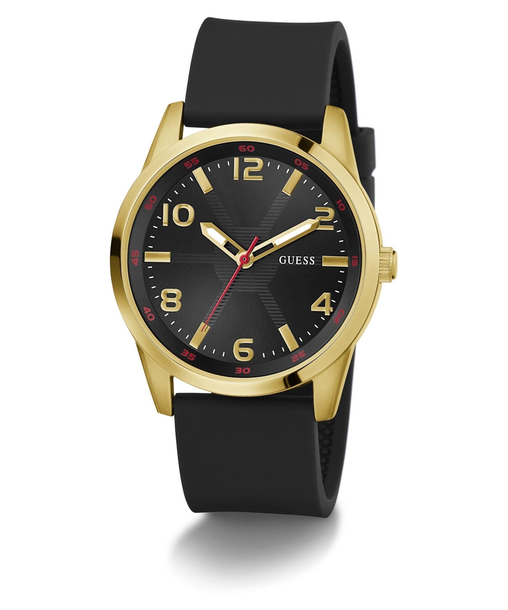 Each Gents Monte Gold Tone Silicone Watch is presented in exquisite Guess packaging, complete with a gift bag, box, and a certificate of authenticity. Enjoy peace of mind with a two-year warranty against manufacturing and material defects. Elevate your collection with this luxurious watch that embodies craftsmanship, style, and sustainability.