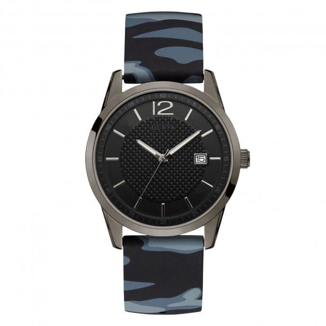 Guess Gents Gunmetal Black Dial Camo Strap Watch W0991G6