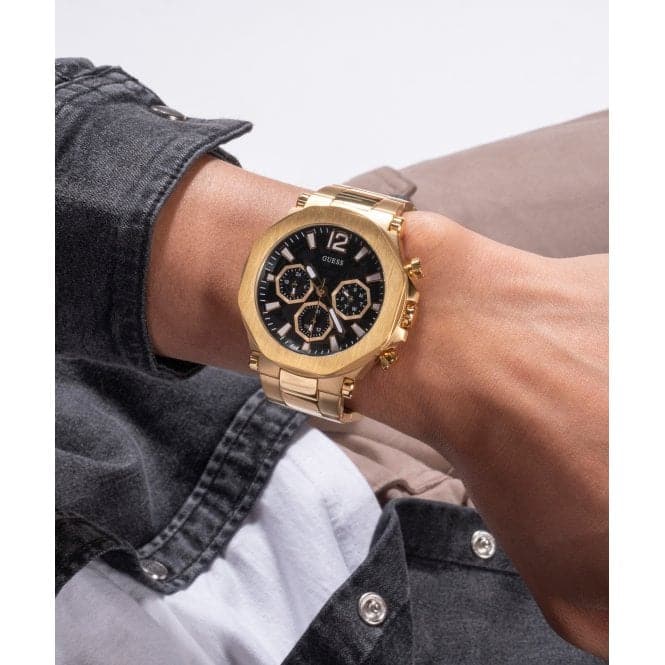 Guess Gents Edge Stainless Steel Gold Watch GW0539G2
