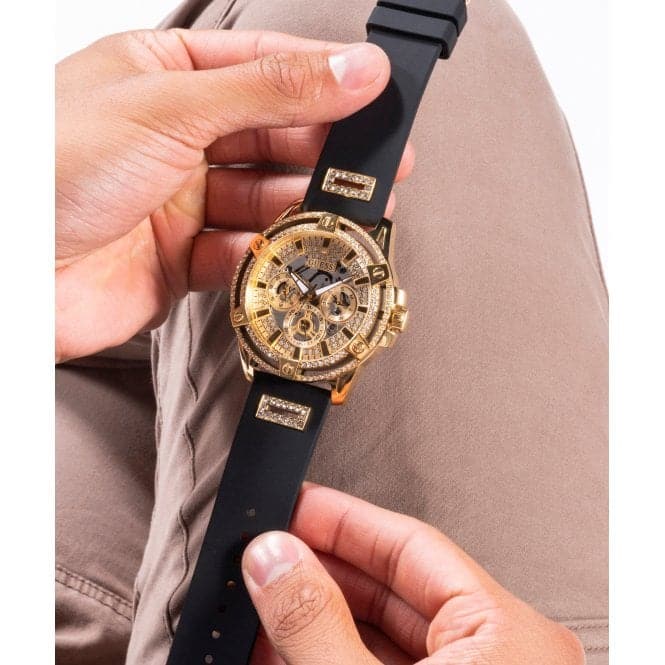 Experience timeless elegance with the stunning Guess Gents King Stainless Steel Gold Watch GW0537G2. This luxurious timepiece from Guess combines modern design with classic sophistication, making it the perfect accessory for any occasion. With its all-over cut-thru details, this watch stands out distinctly while maintaining an air of refinement.