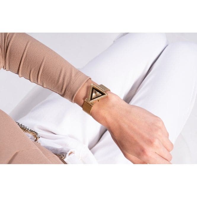 Indulge in timeless elegance with the Guess Ladies Fame Stainless Steel Mesh Gold Tone Watch GW0508L2. This exquisite timepiece is a testament to fashion-forward design, combining sophistication with a contemporary edge. Crafted for the modern woman, this watch features a stunning case adorned with the iconic GUESS triangle logo, elegantly presented in a champagne sunray dial that catches the light beautifully.