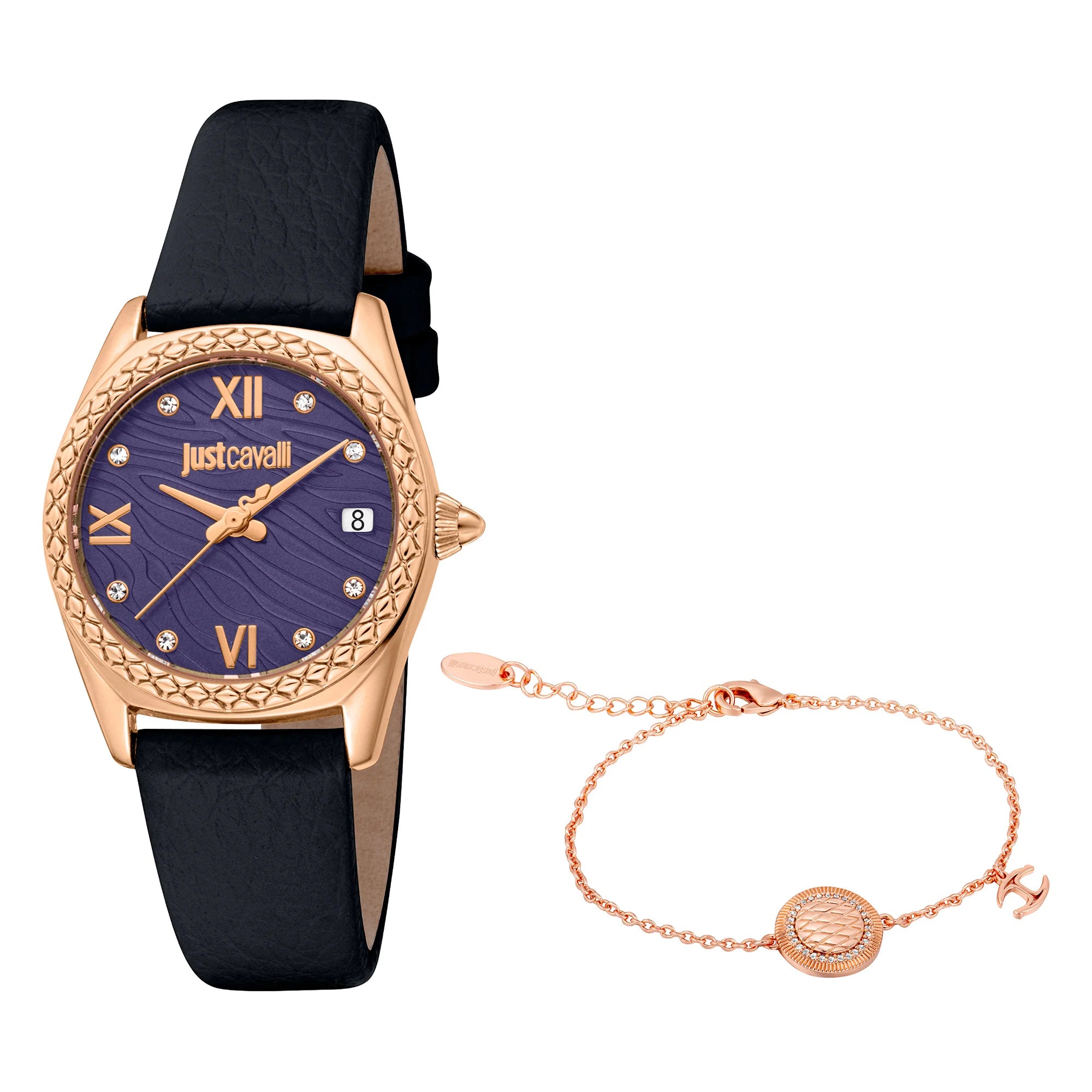 Just Cavalli Indomitable Animalier Leather Black Violet