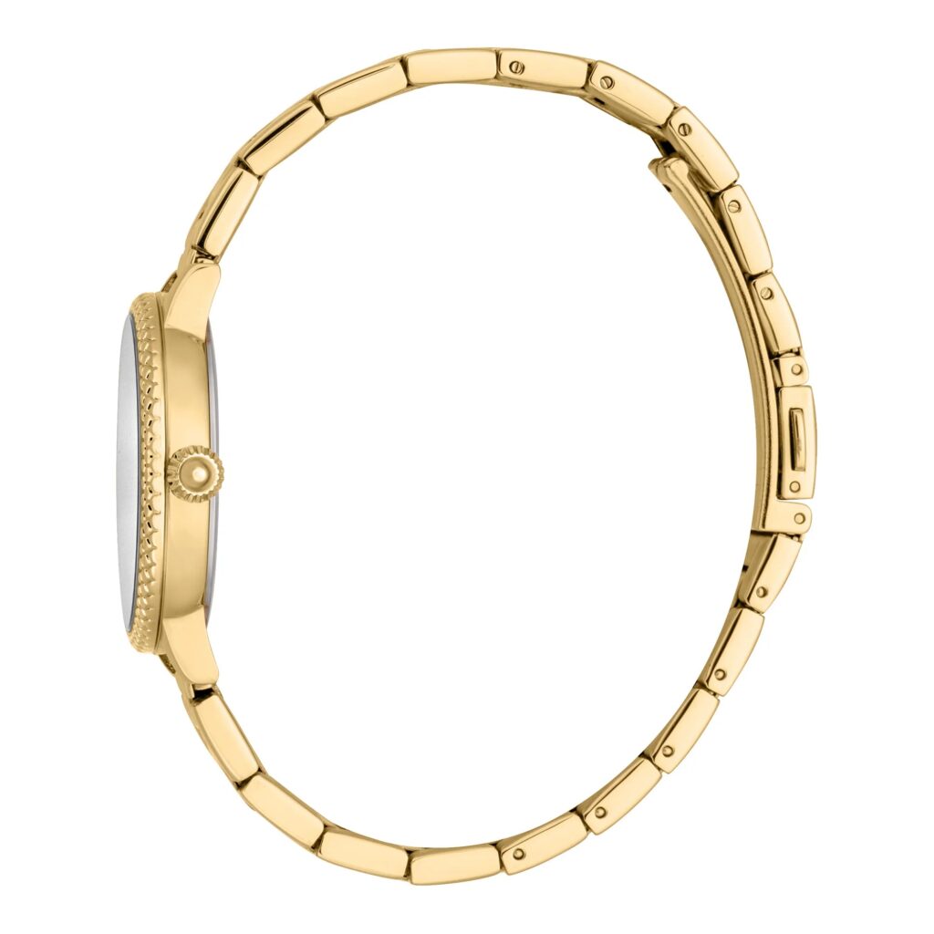 Ignite your style with an elegant, luminous gold tone in brushed stainless steel featuring a sleek round silhouette and a captivating silver-grey dial. The smooth texture invites a subtle touch of sophistication, while the luminous shimmer illuminates your wrist with every movement. Designed to elevate your everyday elegance, it promises a seamless transition from chic casual to refined evening looks, ensuring you stand out with effortless grace.