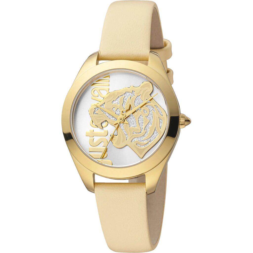 Just Cavalli Pantera Leather Beige Gold