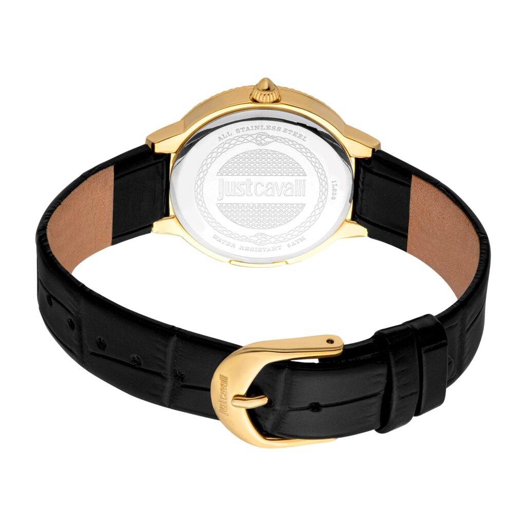 Just Cavalli Puntale Black Leather Yellow Gold