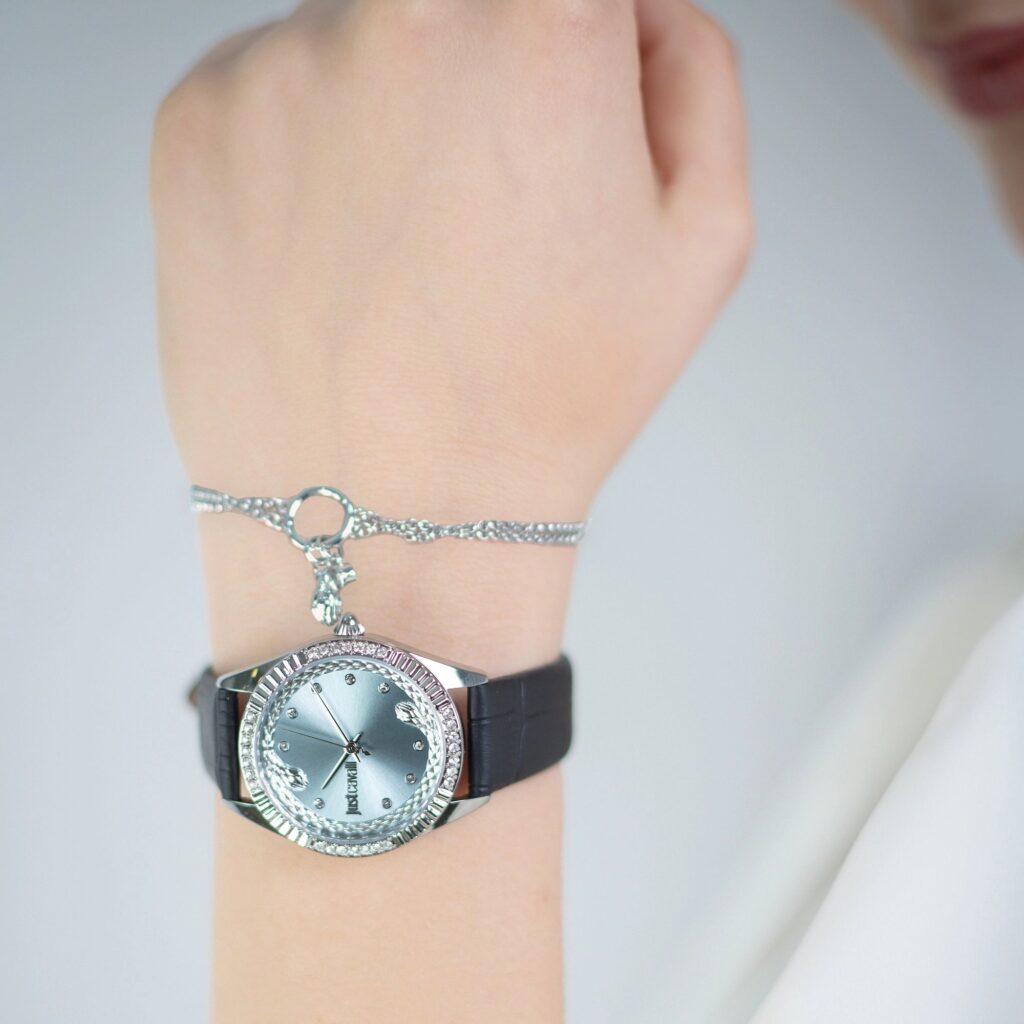 Just Cavalli Vittoria Glam Leather Black Light Blue