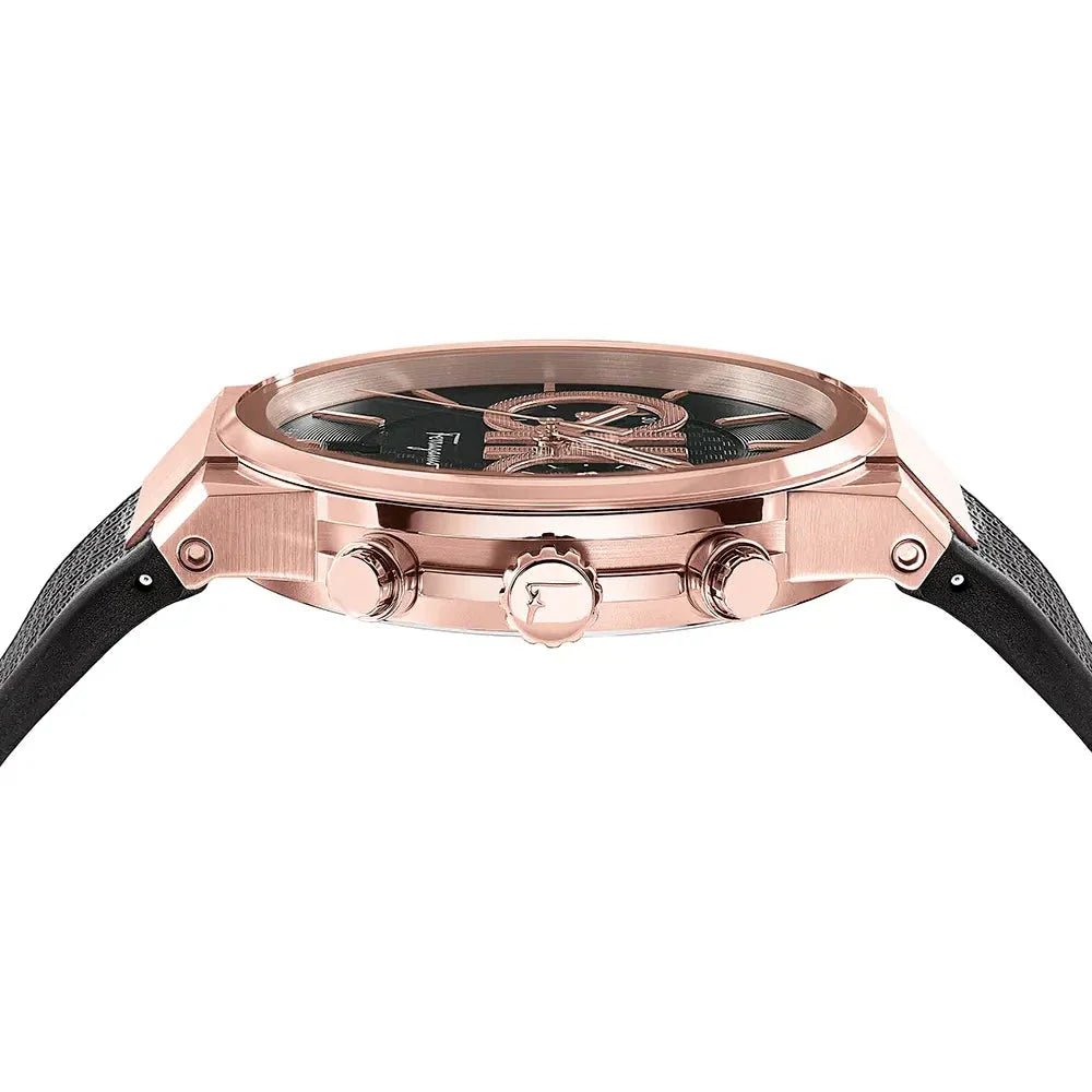Salvatore Ferragamo Sapphire Chrono Black Dial Black Rubber Strap Watch For Men Sfme00721