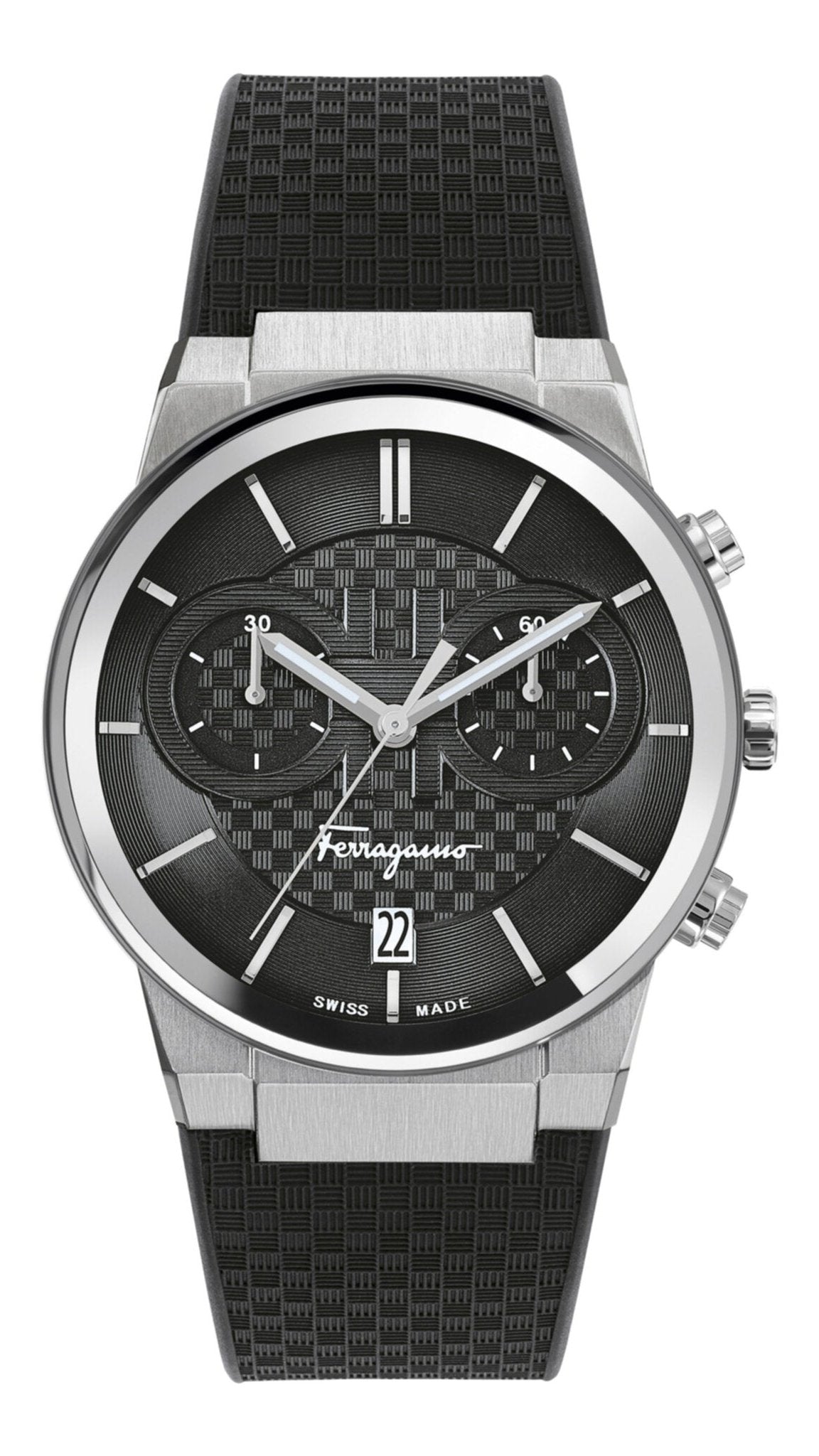 Due to its great success, the outstanding watch collection Ferragamo Sapphire is reinvented with an intricate chronograph movement. The sapphire glass covers the dial and top ring creating a stunning, unique layer. For this new collection, the Double Gancini logo is represented on the dial along with the chrono counters bestowing a sporty yet luxurious touch to this successful timepiece collection.