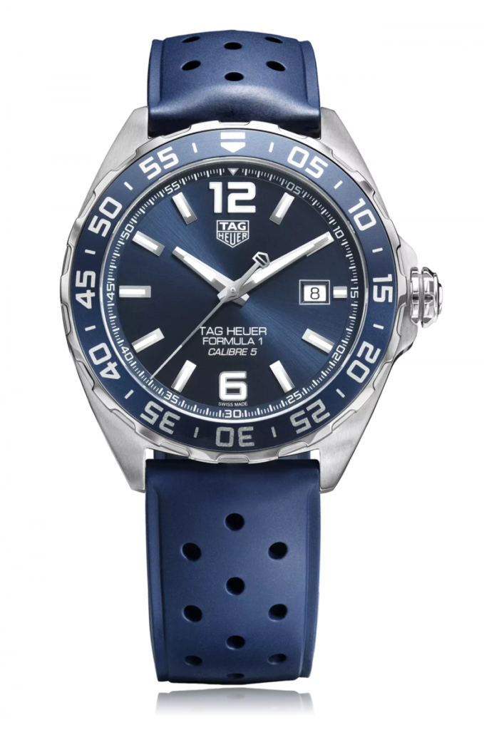 The TAG Heuer Formula 1 Bucherer Blue Edition watch has a robust 43mm stainless steel case and is waterproof to 200 meters.