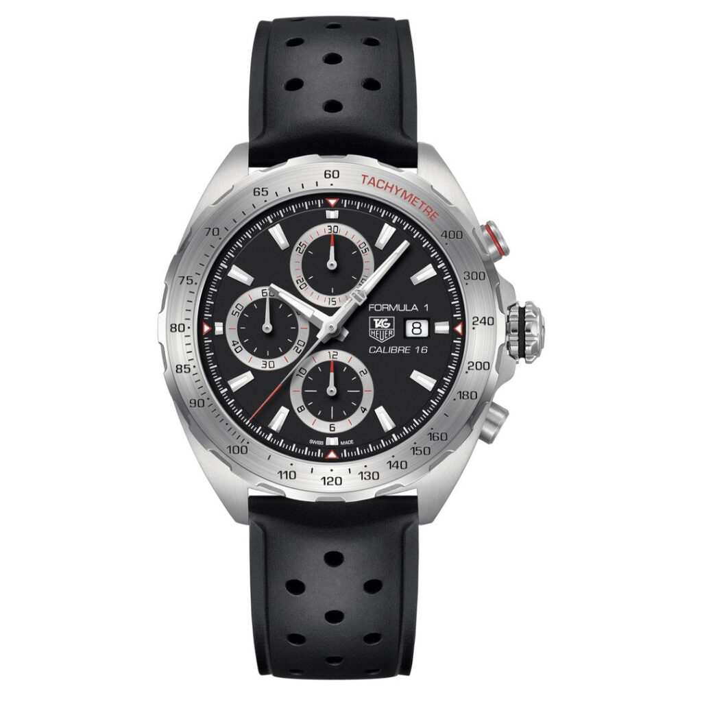 Tag Heuer Formula 1 Chronograph 43mm Automatic Mens Watch Stainless Steel Case With Black Rubber Strap Black Dial