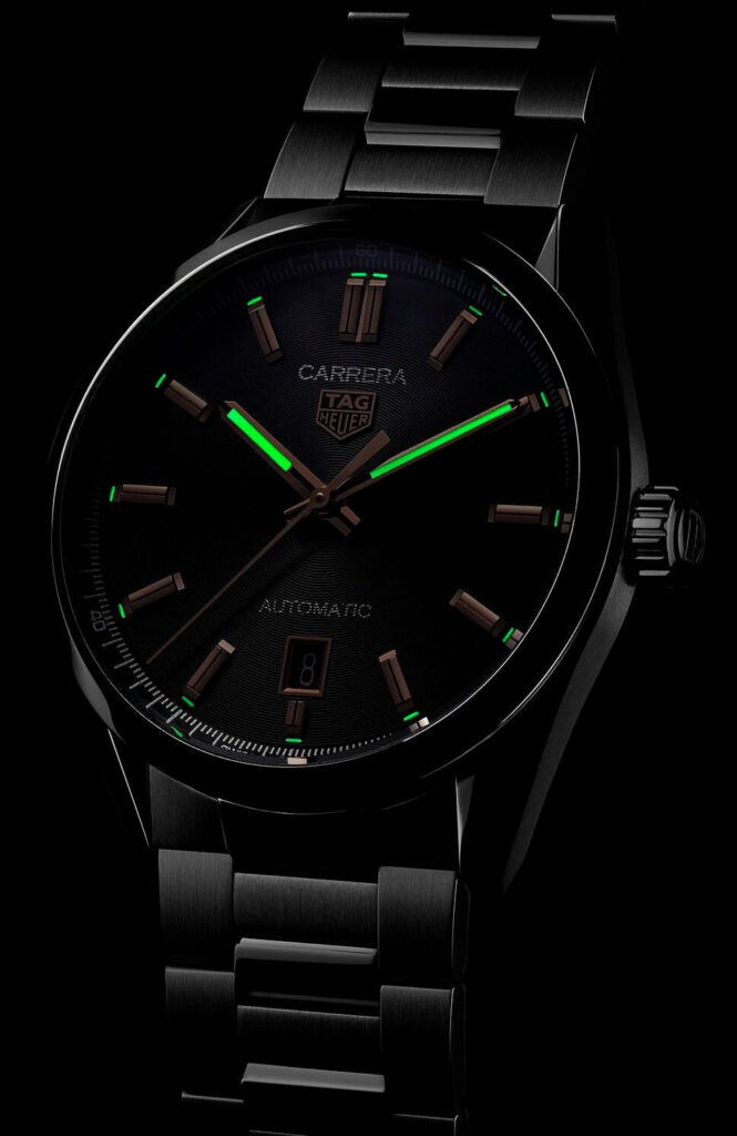 Renowned for their highly accurate and powerful movements, TAG Heuer have equipped this TAG Heuer Carrera watch with one of their famous Swiss made self-winding calibres. The Calibre 5 automatic movement brings to life the hour, minute and seconds function and a date window at 6 o’clock on a handsome black dial. The functions are displayed using sleek rose gold plated hands with white Superluminova inserts and matching rose gold applied indexes. Protecting the dial is a layer of sapphire crystal glass famed for its scratch resistance and crisp legibility equipped to a 39mm stainless steel case with an exhibition case back. For one final touch of sophistication, this TAG Heuer Carrera watch for men is fitted with a H-shaped three-row link stainless steel bracelet and a folding clasp with push buttons.