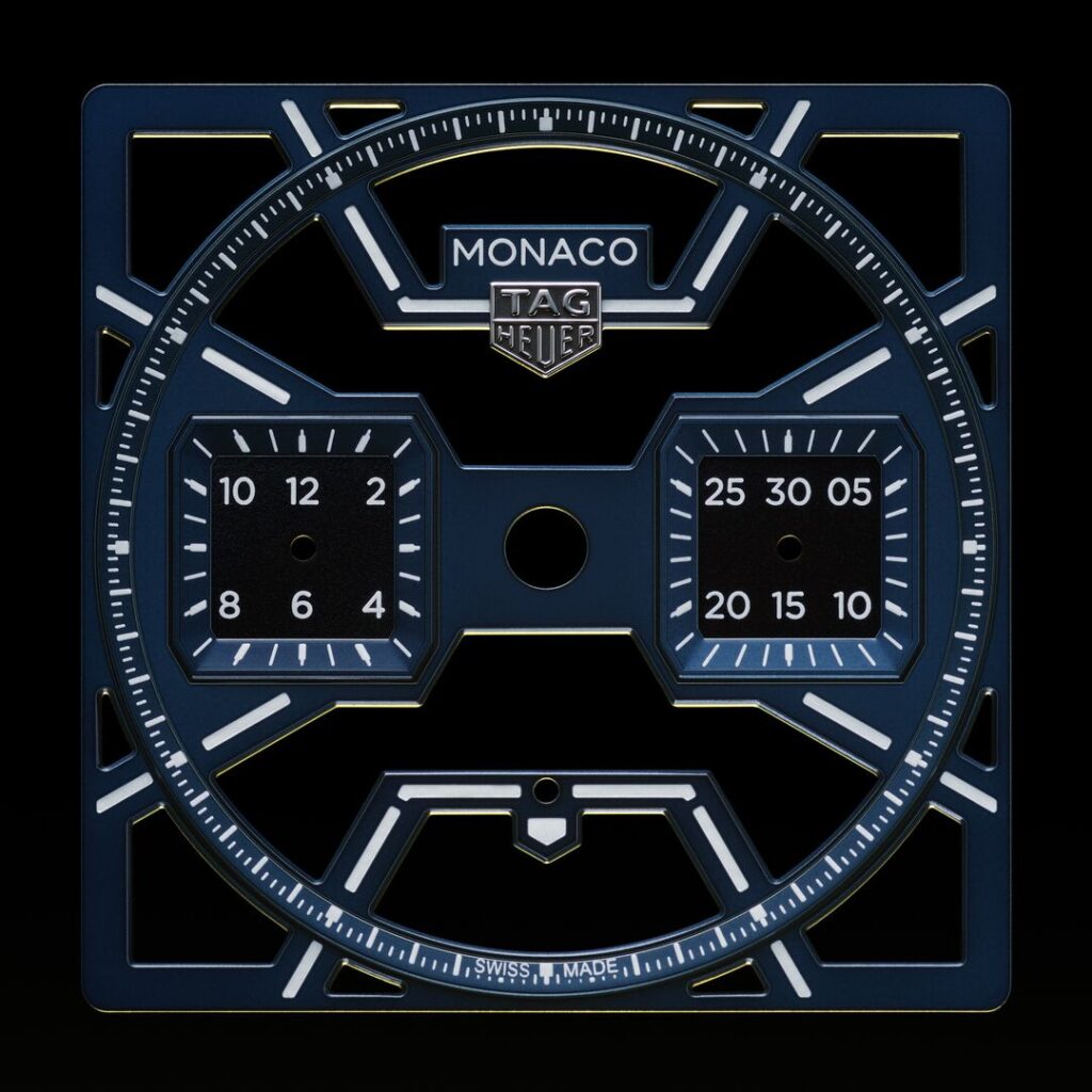 TAG Heuer Watch Monaco Chronograph CBL2188.FT6261. Embrace the thrill of the race with this dark blue TAG Heuer Monaco. A modern reinterpretation of an iconic design, this timepiece combines a bold blue and yellow palette with a contemporary skeleton dial. A fiercely charismatic icon.