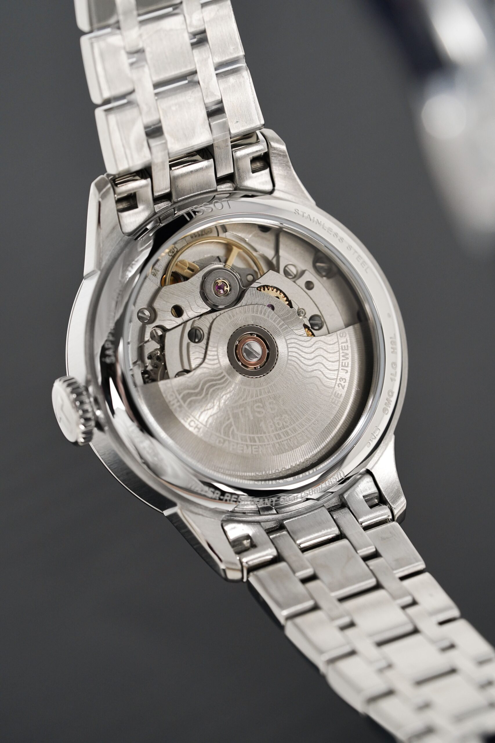 32mm x 10.7mm 316L Stainless Steel Case. Domed Scratch-Resistant Sapphire Crystal with Anti-Reflective Coating. Open Exhibition Case Back.Â