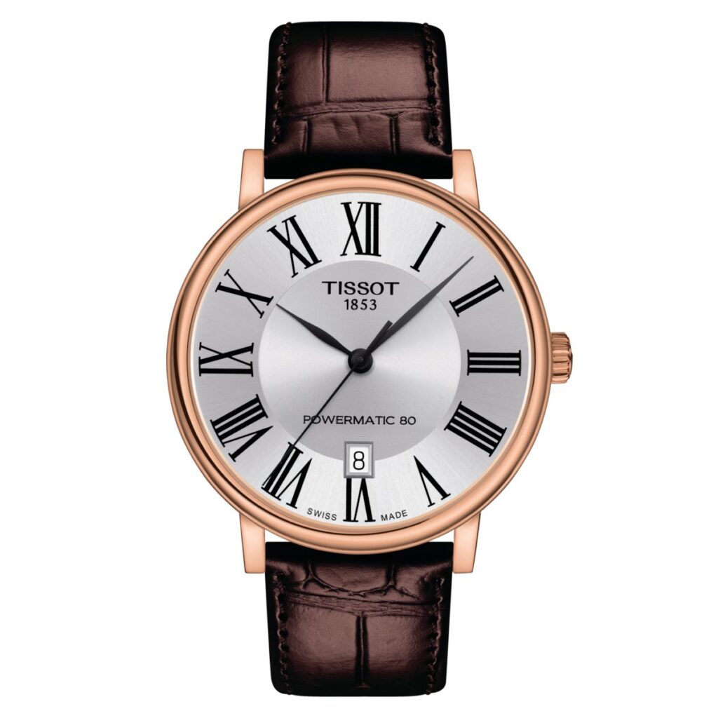 Tissot Mens Watch Carson Auto Powermatic 80 Premium 40mm Silver Brown T1224073603300