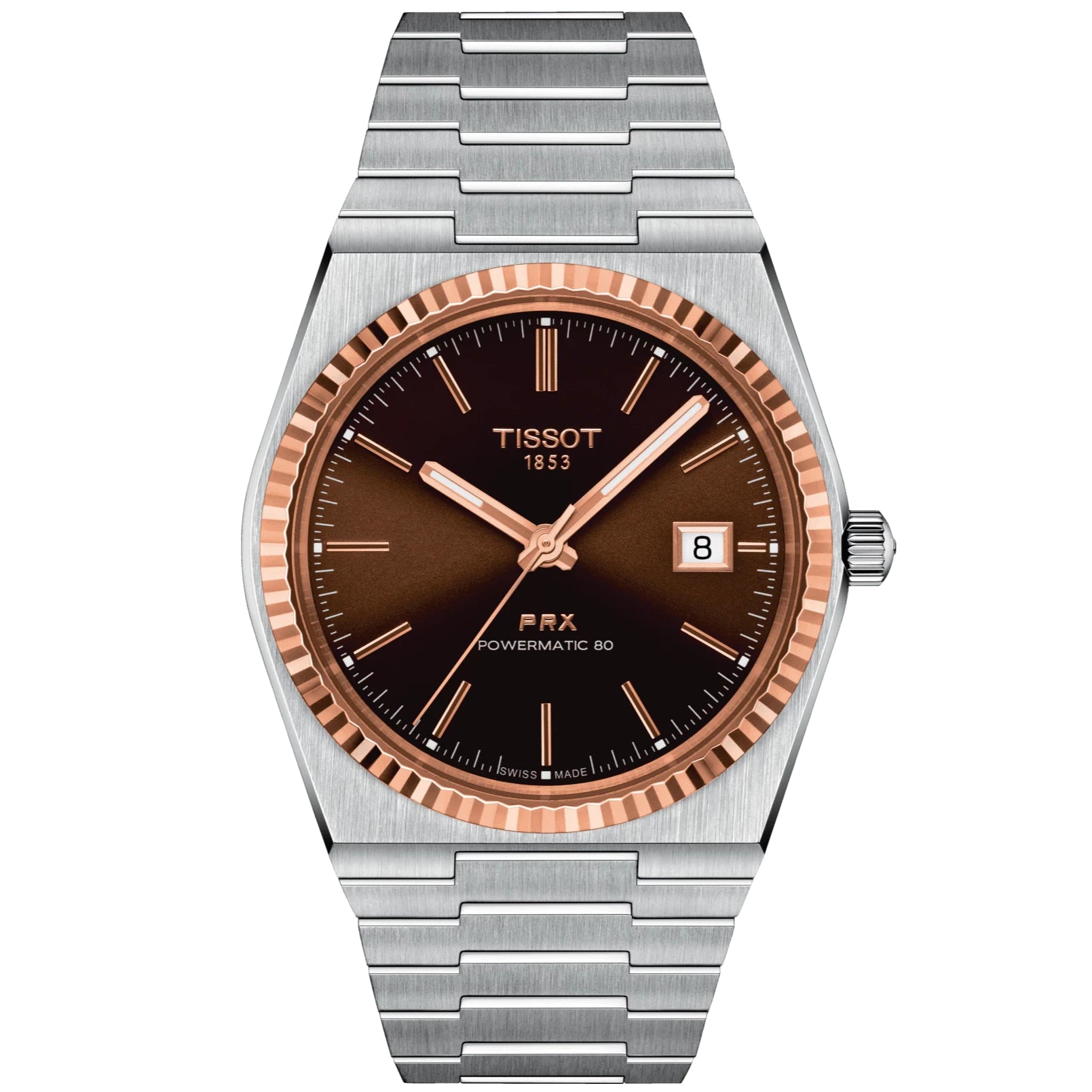 An automatic watch is powered by the energy of the person who wears it. Wrist movement enables the mechanism to run. The Powermatic 80 movement boasts 80 hours of power reserve, which is enough to continue telling time accurately even if the watch is not worn for three days. All of this watchmaking excellence can be viewed through the sapphire crystal watch back. It is an innovative movement that outperforms the competition, whose movements generally provide 36 hours of power reserve. Ensuring good visibility under all conditions is an important goal for Tissot. This is why some timepieces feature a material we call Super Luminova®. This material is placed on visible parts such as dials and hands, where it functions as a miniature accumulator of reflected light when the watch finds itself in the dark. This model boasts an extra touch of sophistication by sporting an18ct. Rose Gold fluted bezel to compliment the baton hour markers and warm, chocolate brown dial.