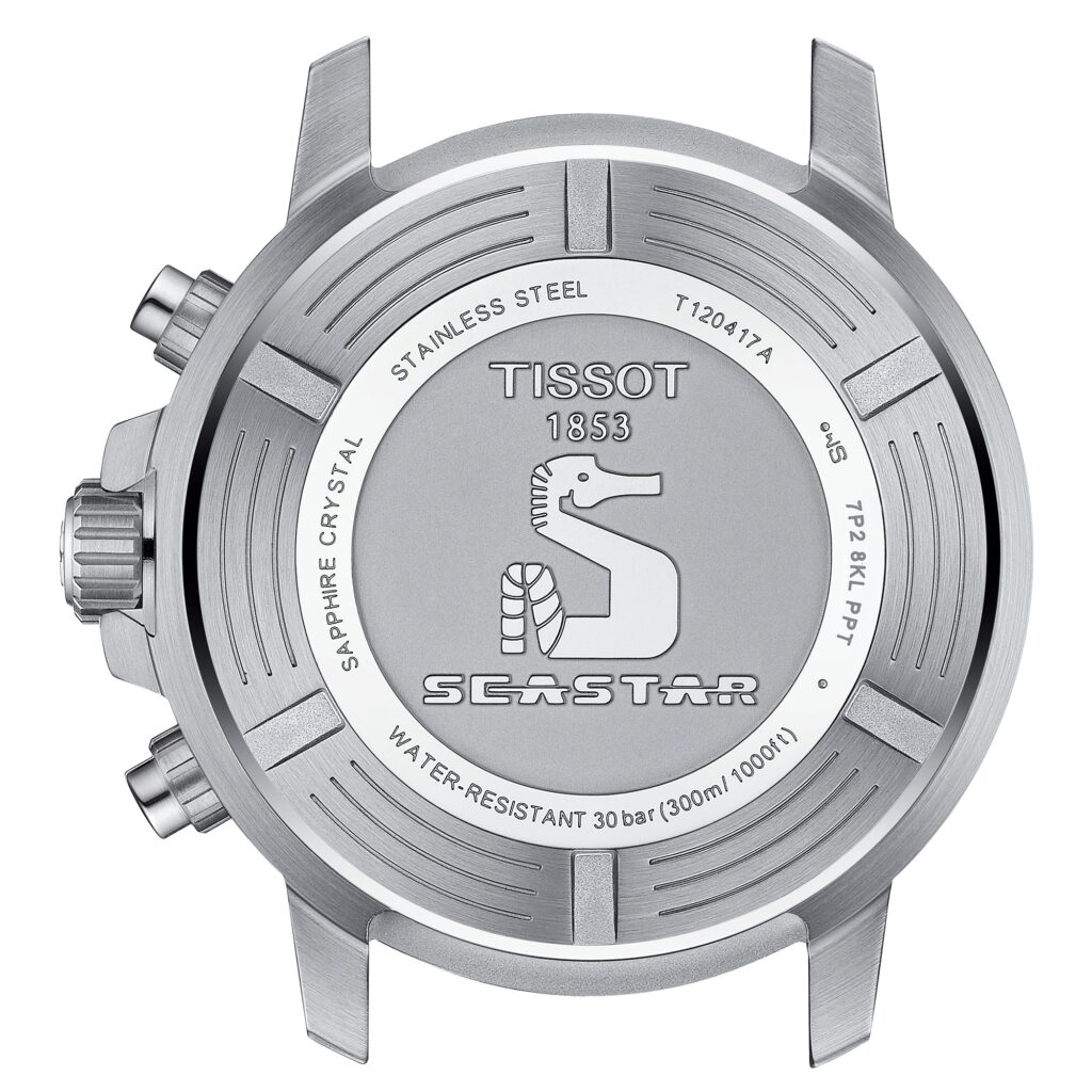The Tissot Seastar 1000 merges style and performance without compromising either. The diving inspiration shapes both the appearance and the functionality of this watch. It maintains its performance to a pressure of 30 bar (300m/1’000ft), combining underwater sports and a preference for a sophisticated Swiss timepiece. The diving theme continues through elements such as a unidirectional bezel, a strap with a divers’ safety buckle, plus luminescent hands and markings.
