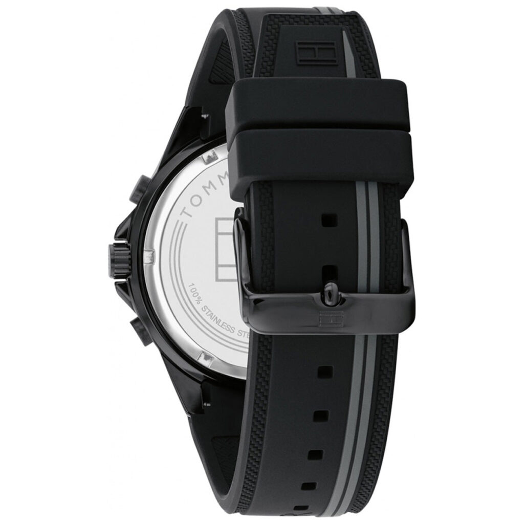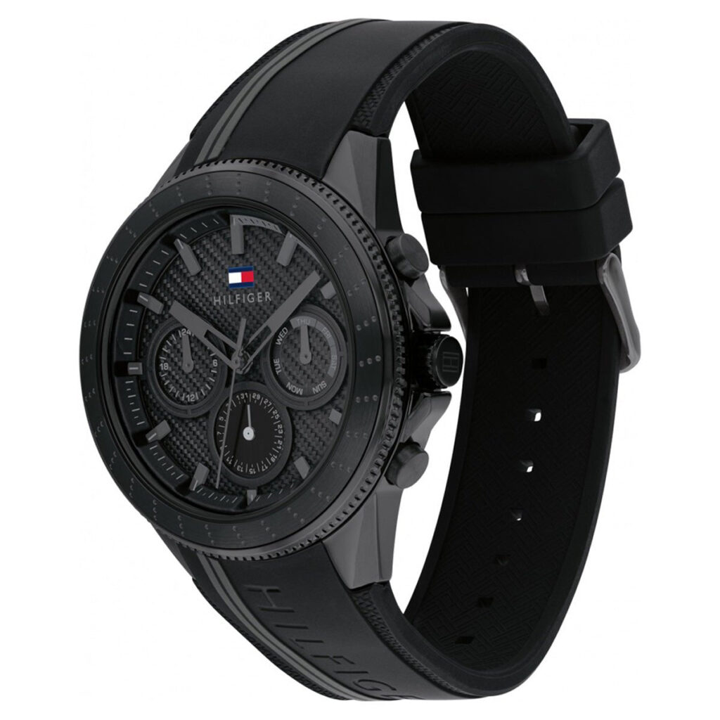 The Men’s Tommy Hilfiger Watch 179.1861 (1791861) is available to buy from Shade Station. It features a black silicone strap, an ip black stainless steel case and has a black with three hand movement, sub dial day/date display dial.Â