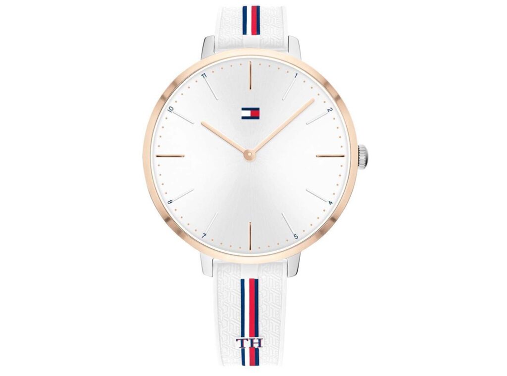 Tommy Hilfiger women’s watch. We love the clean, minimalist design of our latest sport watch, designed with a classic two-hand movement, rendered in white. The silicon strap is at once both comfortable and durable, and made complete with our signature stripe.