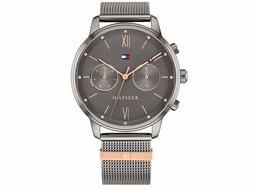 Tommy Hilfiger Blake 1782304 is an incredible eye-catching Ladies watch from Blake collection. Material of the case is Plated Stainless Steel and the Grey dial gives the watch that unique look. 30 metres water resistancy will protect the watch and allows it to be worn in scenarios where it is likely to be splashed but not immersed in water.