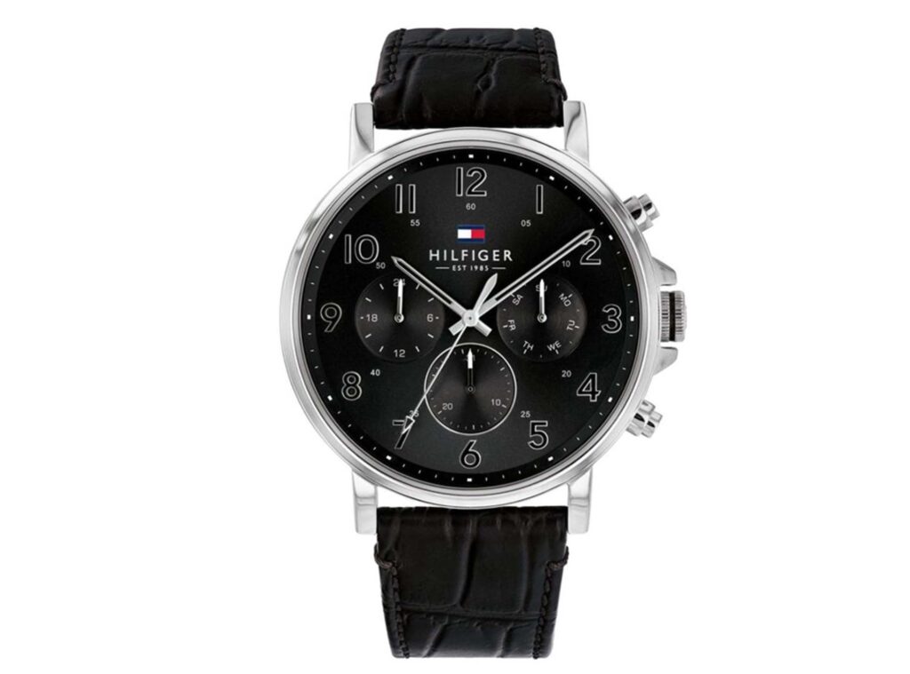 This collection, offered in stainless steel and black and gold Ion Plating (IP) bracelets, or croco-embossed leather straps, features a 44mm case and satin finished dial. Product Features: Multifunction.Case thickness 9.6mm.Black Dial.
