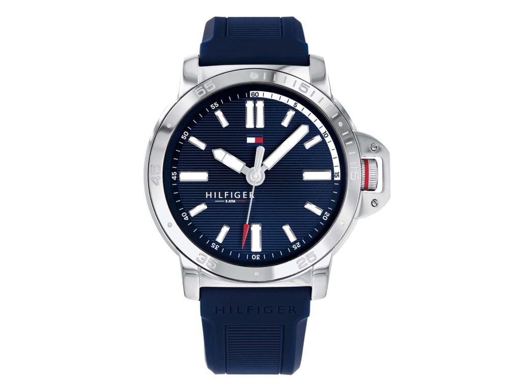 Tommy Hilfiger men?s watch. Inspired by the classic diving timepiece, our sport watch delivers with a unidirectional rotating bezel, stainless steel case and comfortable silicone strap.