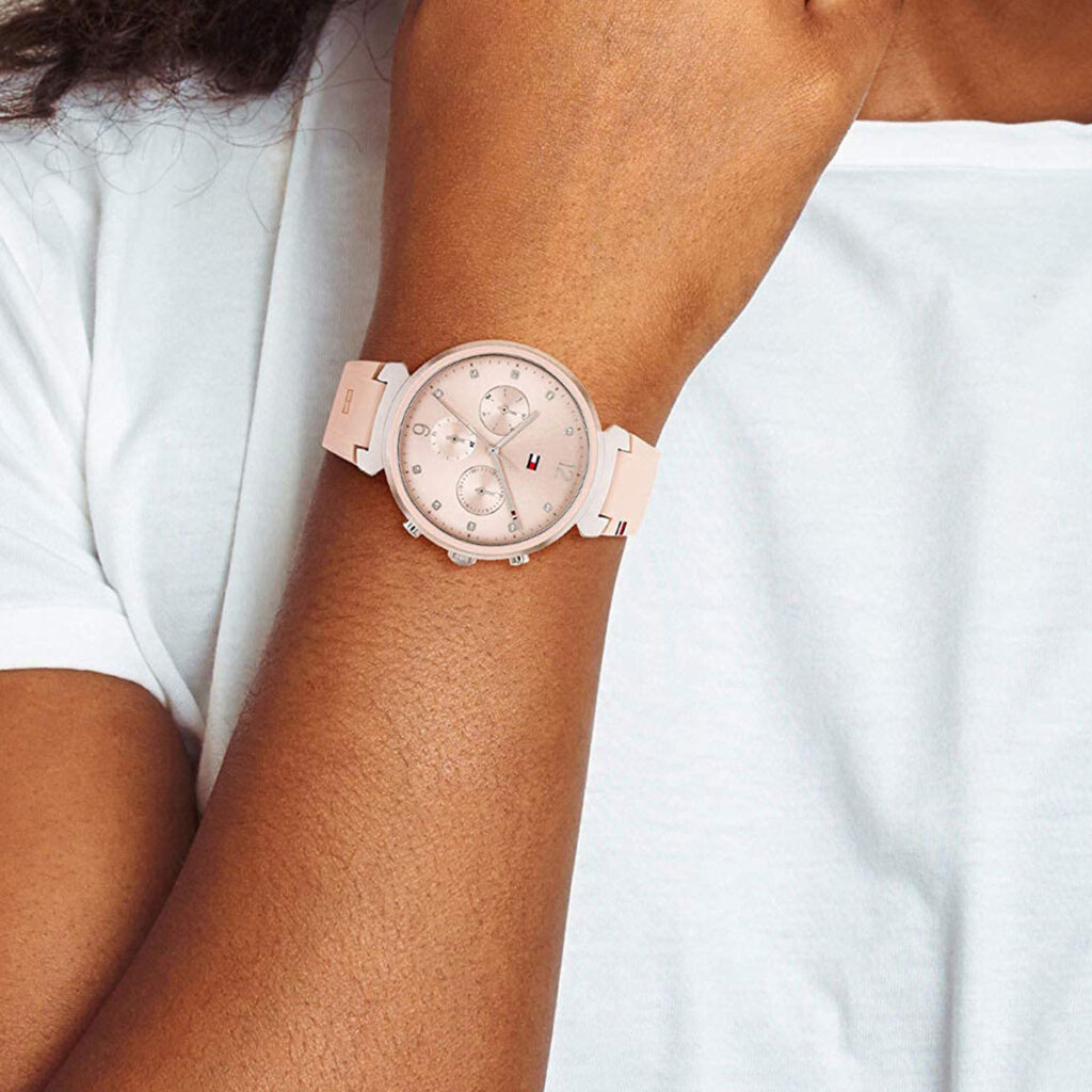 An elegant and elevated sport featuring a Tommy twist on classic elements. A 38MM case features a sunray multifunction dial with polished crystal markers. Available in stainless steel, carnation-gold, gold-plated, and two-tone finishes. Attached with a link bracelet or silicone straps. 3 ATM/ 30 Meters