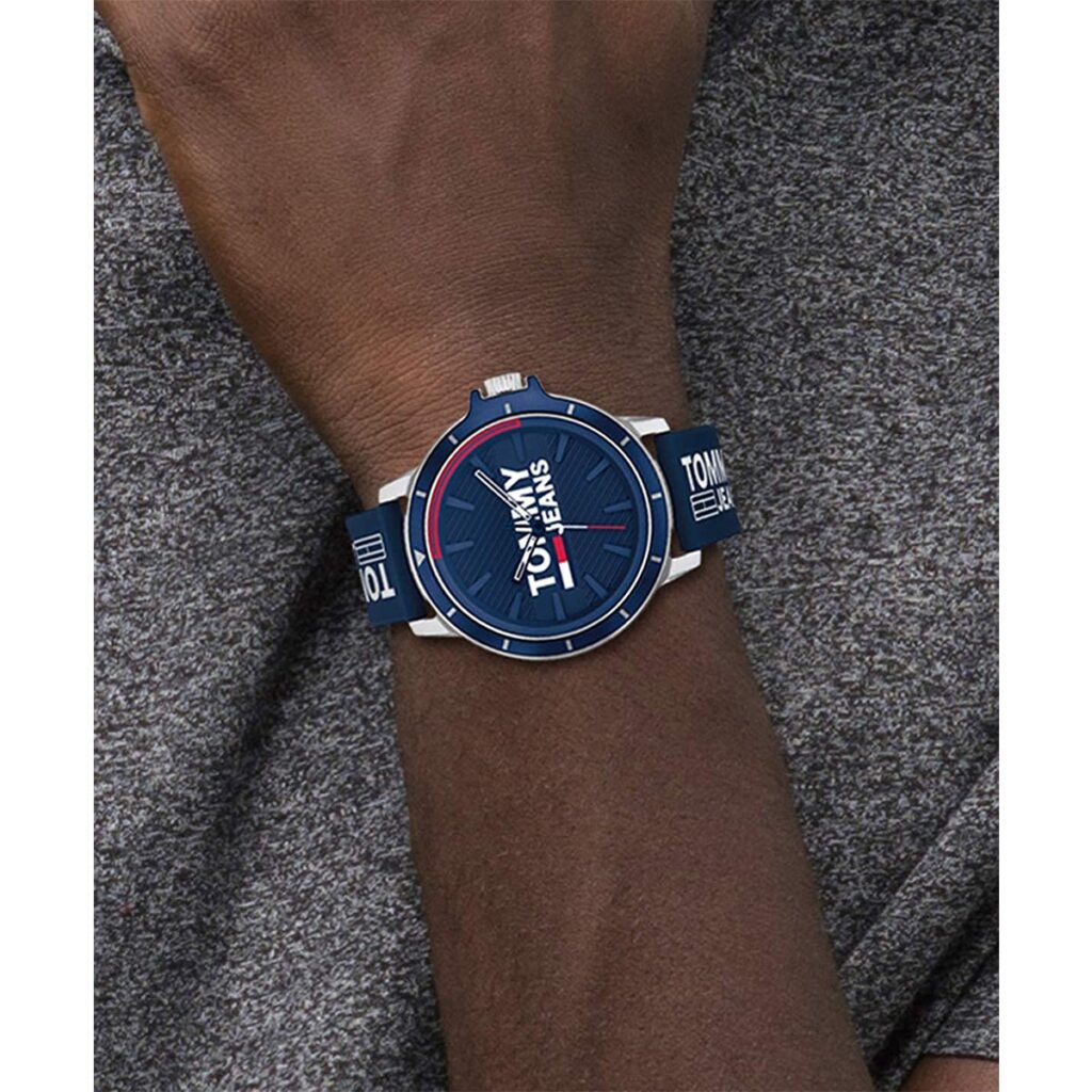 TOMMY JEANS: A genuine Tommy Jeans piece with cool and bold branding. This 44mm case features a textured dial with bold Tommy Jeans branding.