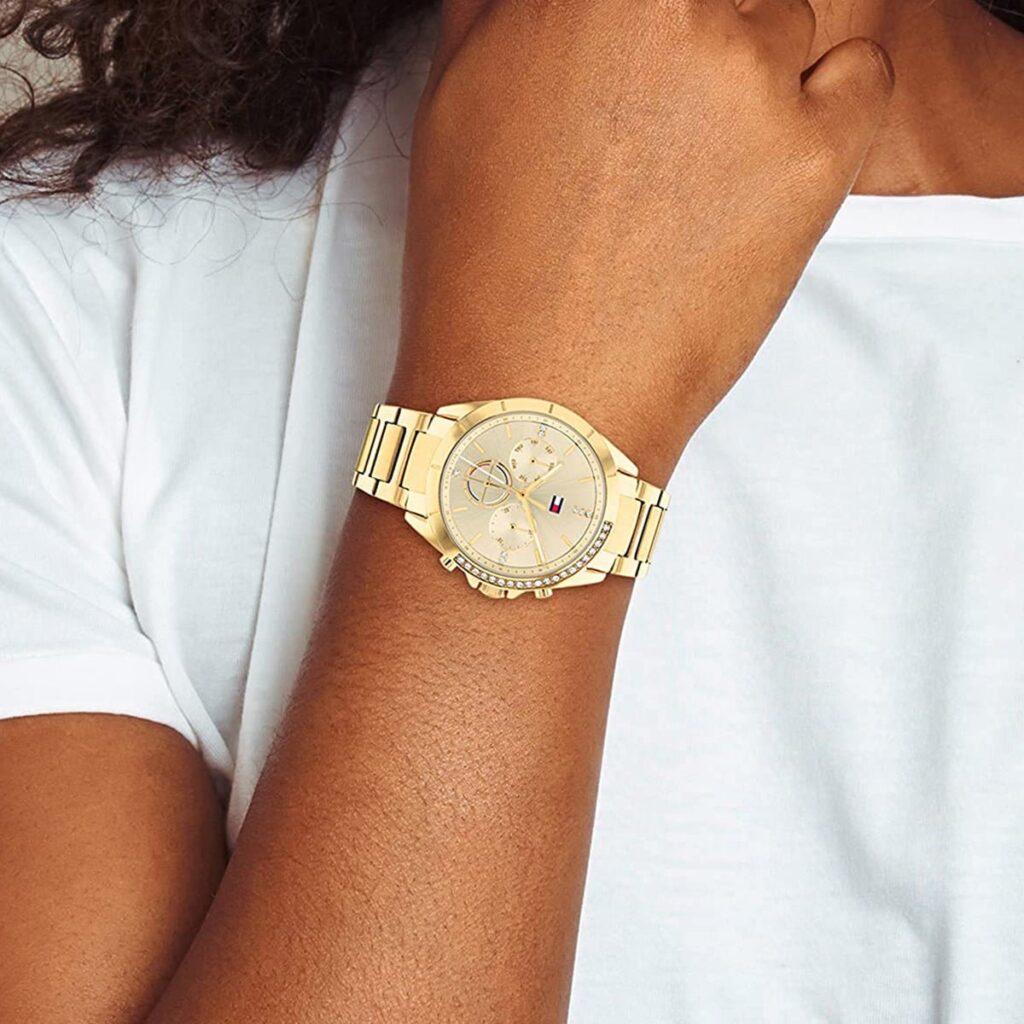 A dressed up sporty watch perfect for everyday. Unconventional and charming. This 38 MM stone set bezel collection features sunray dials with iconic design elements, crown protector, framed sub eyes, and stone indexes. Available in bracelets and straps, TT, GP, CG, SS. Multifunction 5 ATM